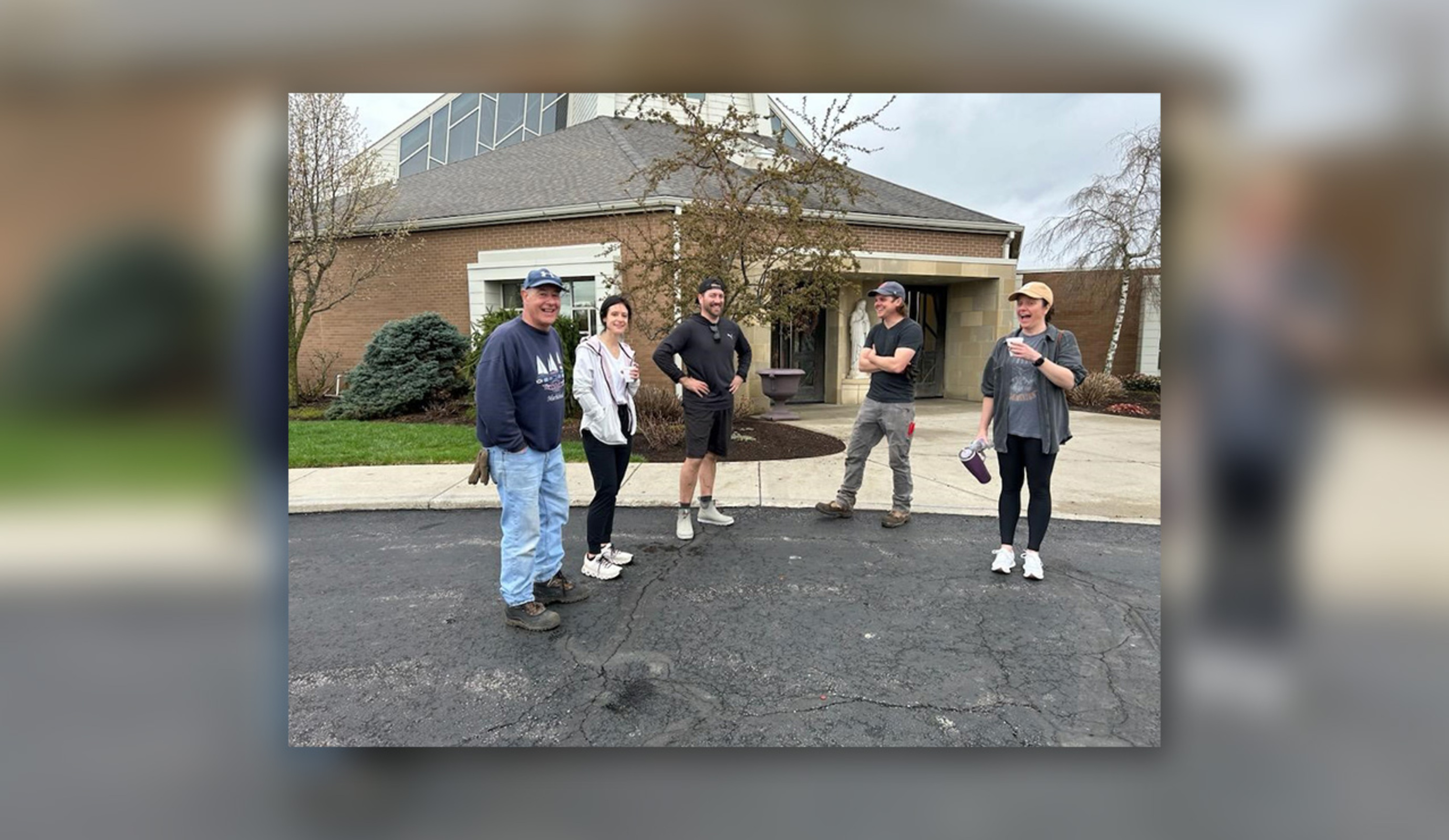 Terri Telepak, director of faith formation, said a crew spent time working on the landscaping in front of the church to spruce it up for spring. They planned to do some clean-up work in the parish cemetery, but wet weather delayed that project.