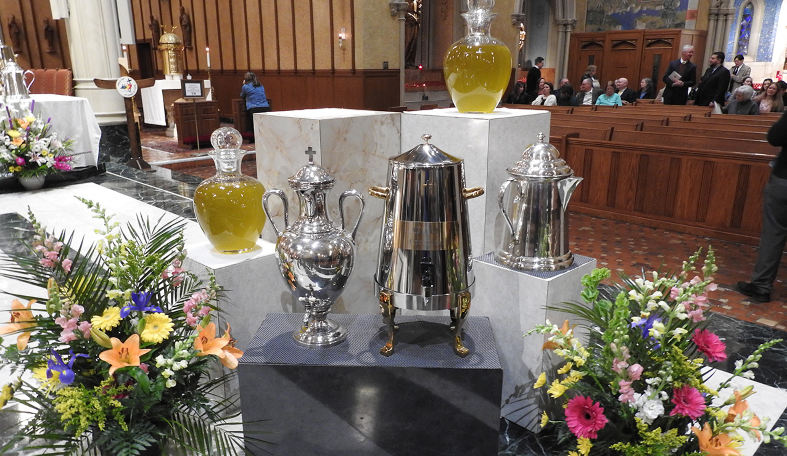 After Mass, seminarians dispensed the sacred oils to representatives of parishes throughout the diocese so they could be used during the year.
