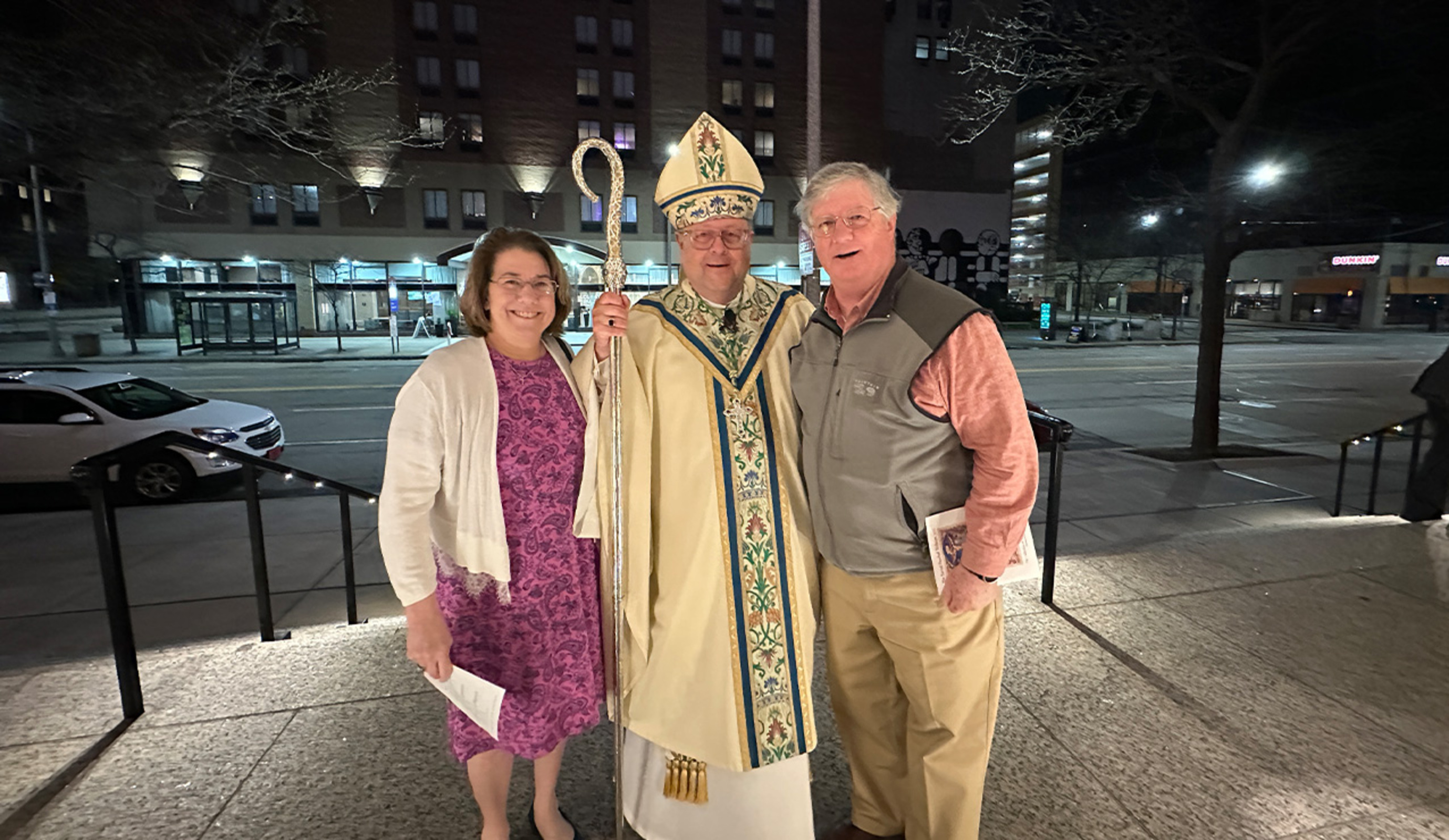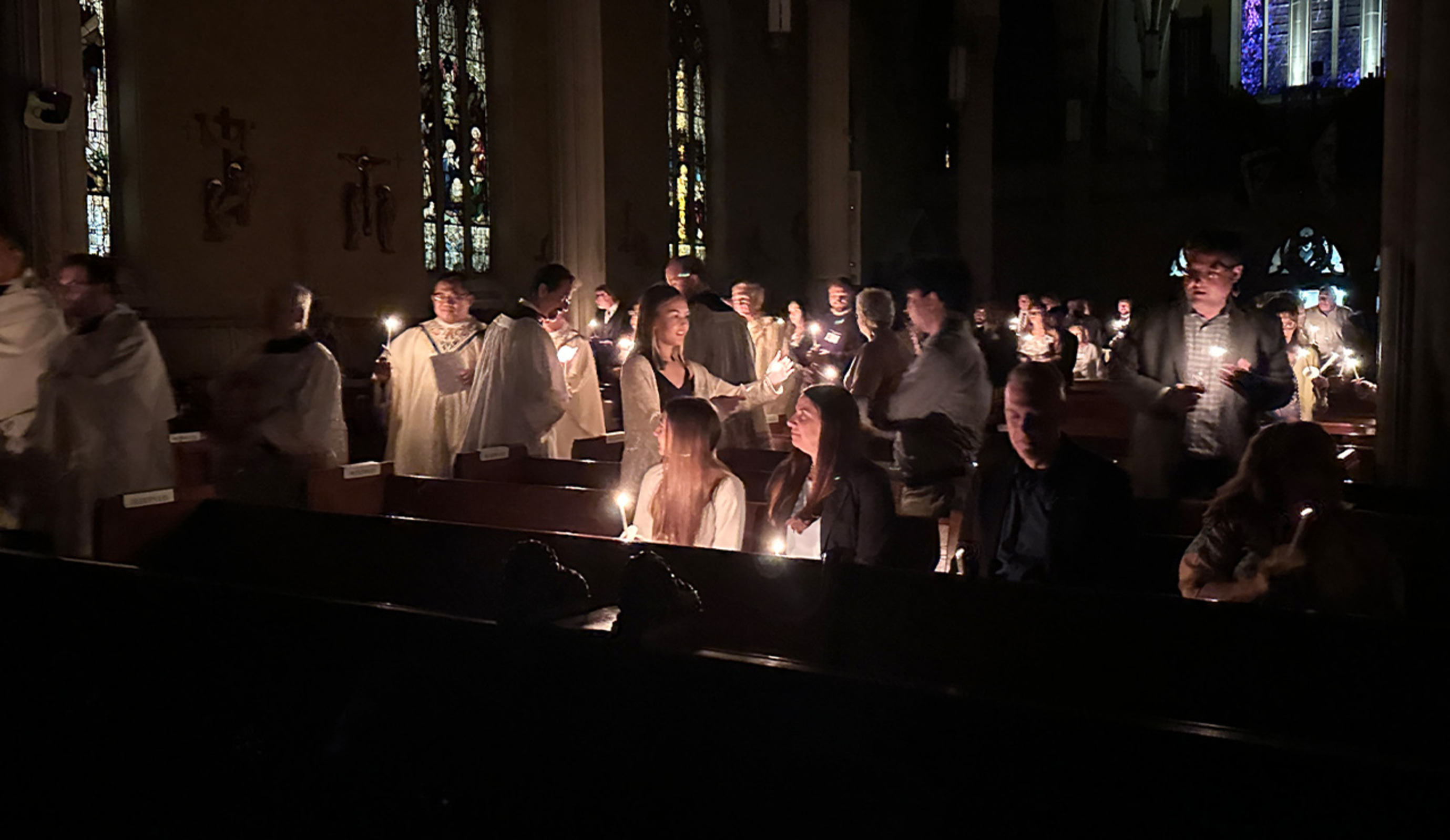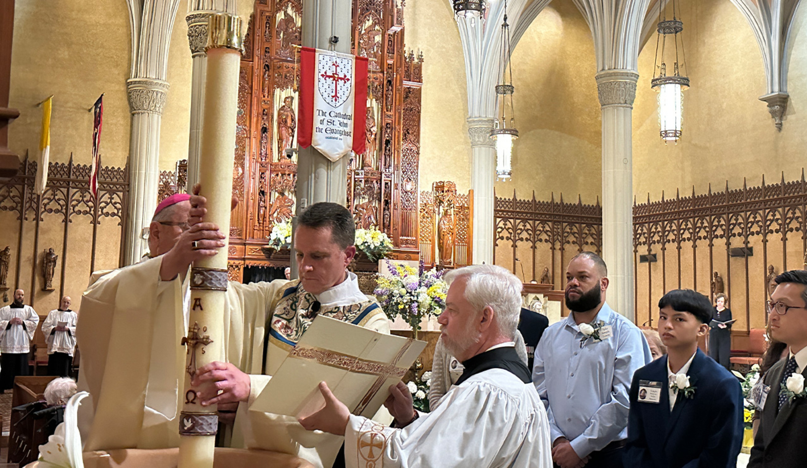 “I can feel the joy of the Church tonight,” Bishop Edward Malesic said to those gathered in the Cathedral of St. John the Evangelist on April 19 for the Easter Vigil.