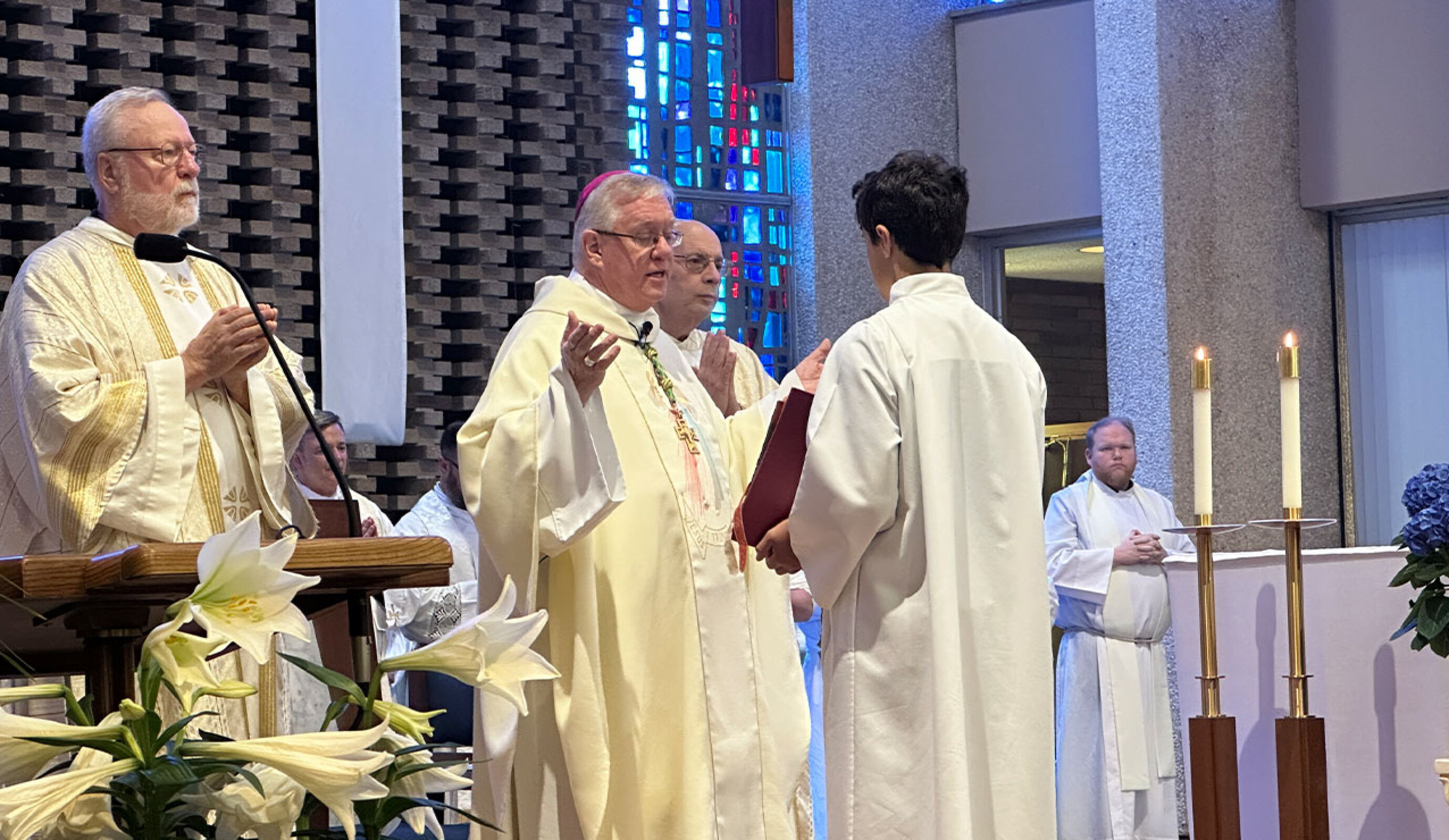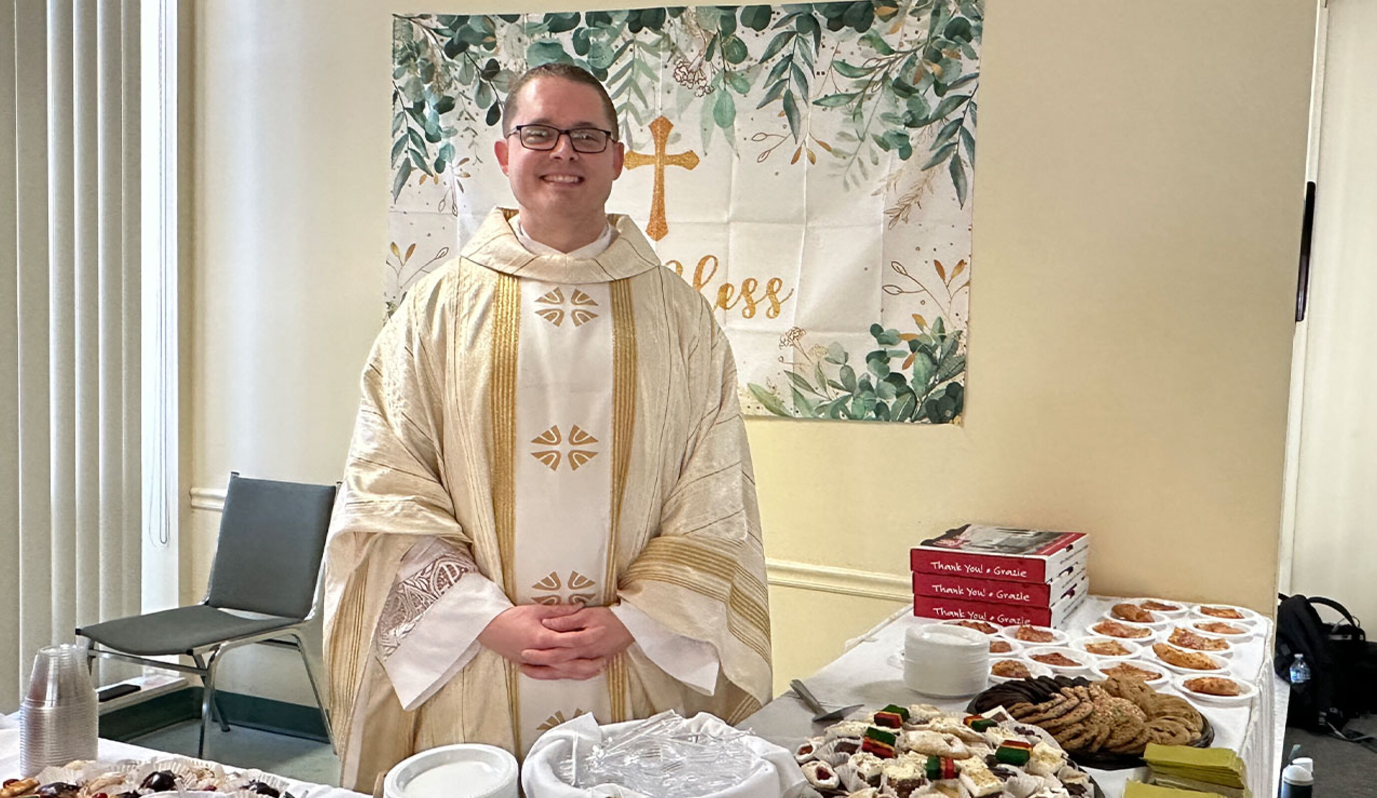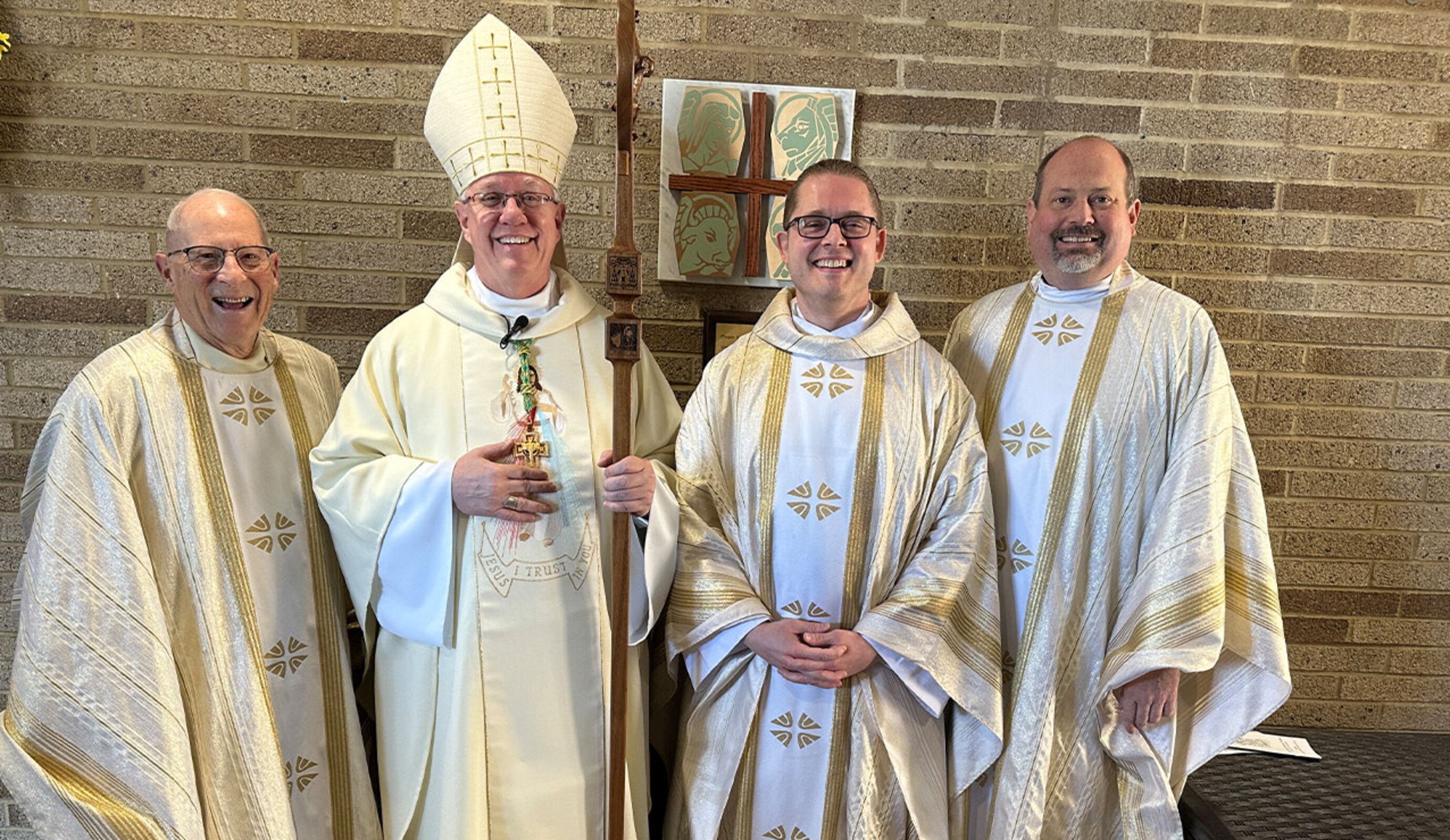 About 20 fellow priests – friends from the seminary, pastors of parishes where Father Gonzalez previously ministered and other priest friends – concelebrated the liturgy. Many members of his family also filled several pews in the church. And Deacon Matt Lawler, who is assigned to the Cathedral of St. John the Evangelist and was serving as Bishop Woost’s master of ceremonies, is a son of St. Joseph Parish.