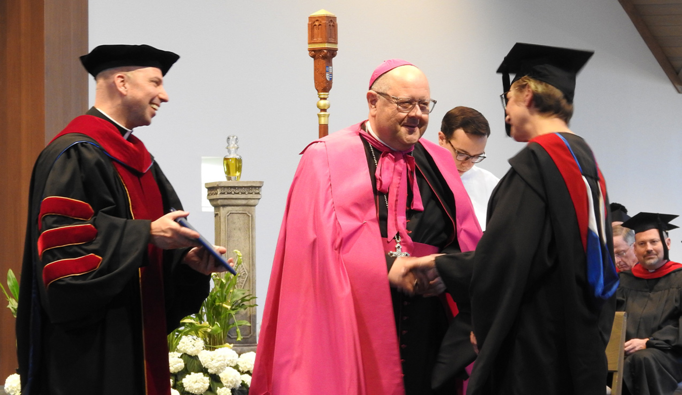 Bishop Edward Malesic and Father Andy Turner, president/rector of the seminaries, presented the degrees. Auxiliary Bishop Michael Woost, a seminary professor, along with other faculty, staff and seminary trustees, attended the ceremony.