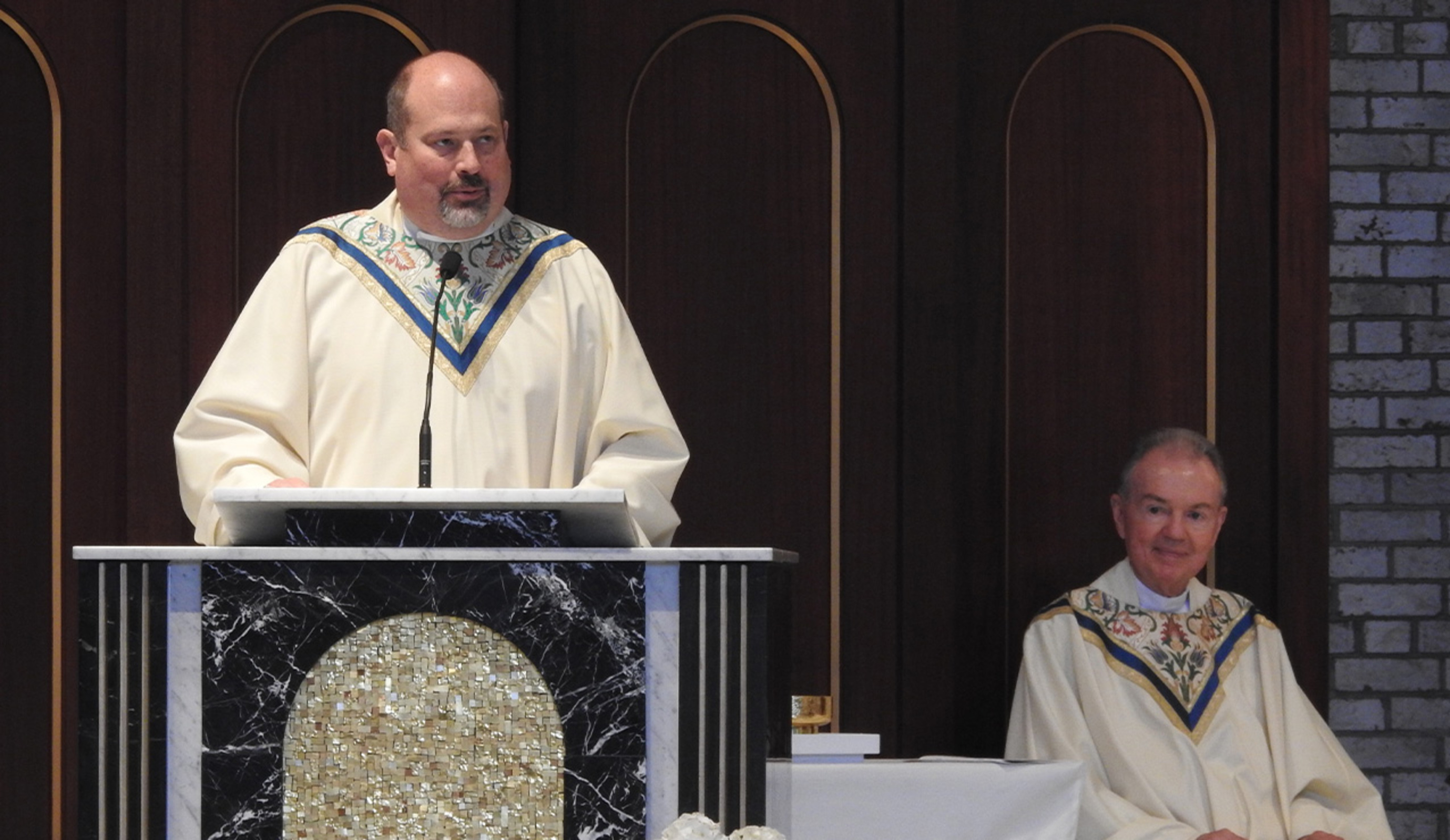 He remembered the boy’s name and learned that he was the child of a single mother whose father was not part of his life. As the years passed, he continued to encounter Joseph. They stayed in touch and grew to be friends. Joseph is now an adult and they are still in touch. “All because I asked his name and remembered it – a simple thing that we do as priests.” Father O’Connor said this encounter is an example of “how God writes straight with crooked lines through us. There is always a lot to be grateful for,” he told his brother priests. In the Gospel used at the Mass, he said Jesus tells his disciples to go and make disciples of all nations, baptizing in the name of the Father, Son and Holy Spirit.
