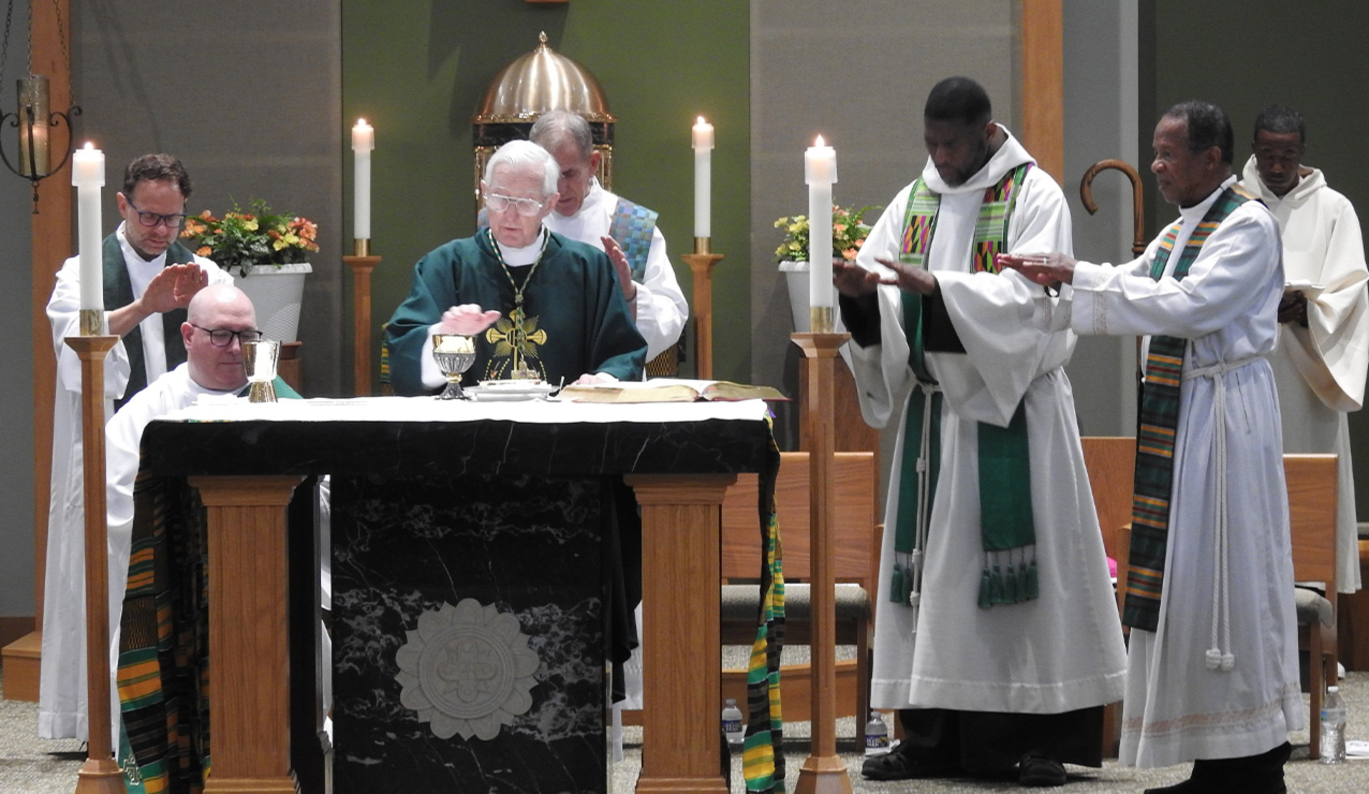 Bishop Martin Amos, retired bishop of Davenport, Iowa, and a son of the diocese, celebrated Mass. Father James Watson, OFM Cap, St. Agnes/Our Lady of Fatima pastor; Father Damian Ference, diocesan vicar for evangelization; Father Dave Domanski, OFM Cap, pastor of Holy Spirit Parish in Cleveland; Father Tom Fanta, pastor of St. Dominic Parish in Shaker Heights; and Father John Judie of the Archdiocese of Louisville, Kentucky concelebrated. Father Judie stepped in as homilist after the recent death of SAOLF Deacon Hardin Martin, who had been scheduled to preach. Deacon Mike Hayes, director of young adult ministry and the interfaith delegate for the diocese, assisted with the liturgy.