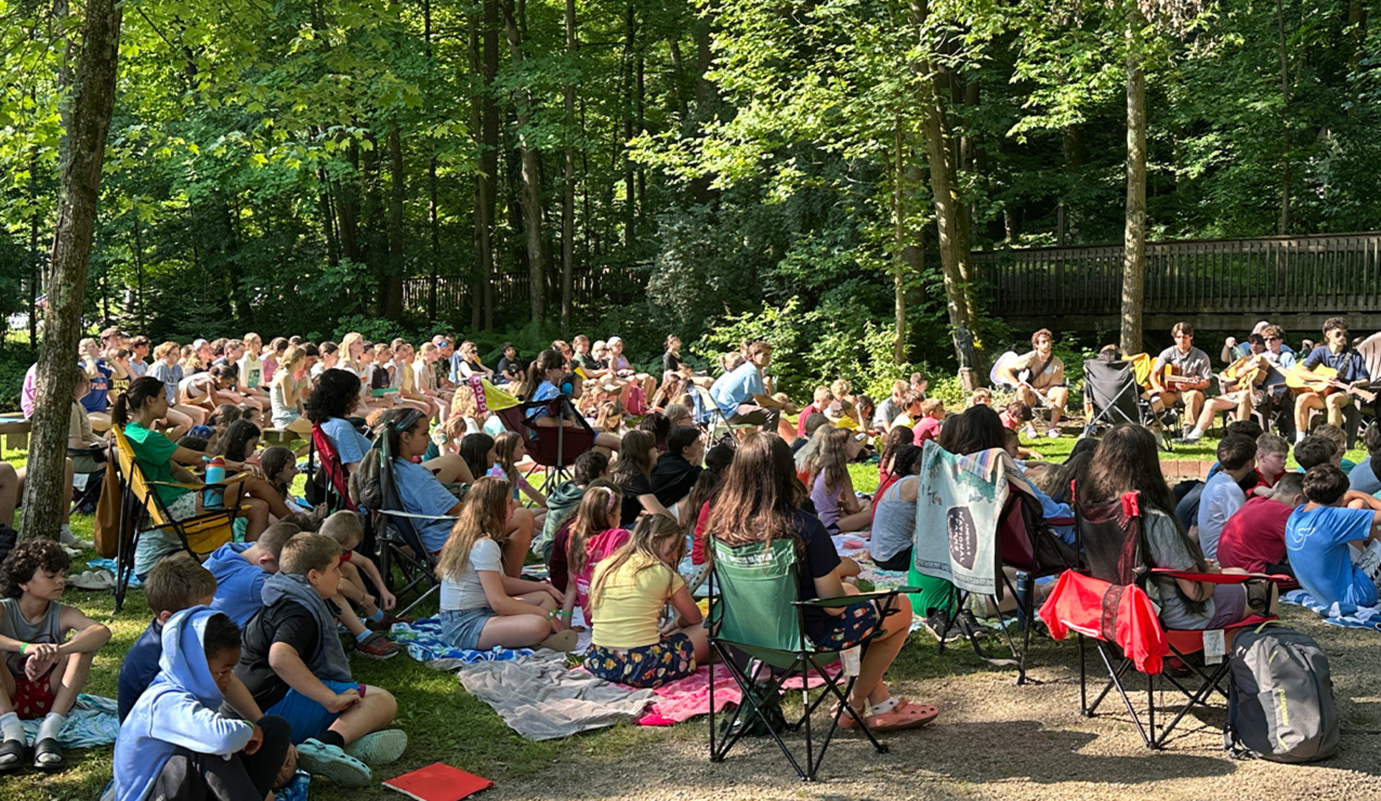 It was sunny and steamy as campers found their places on benches and blankets prior to the liturgy. Father Eric Garris, diocesan vocations director, concelebrated the Mass. Camp staff provided music and campers participated as servers. They also read the petitions.