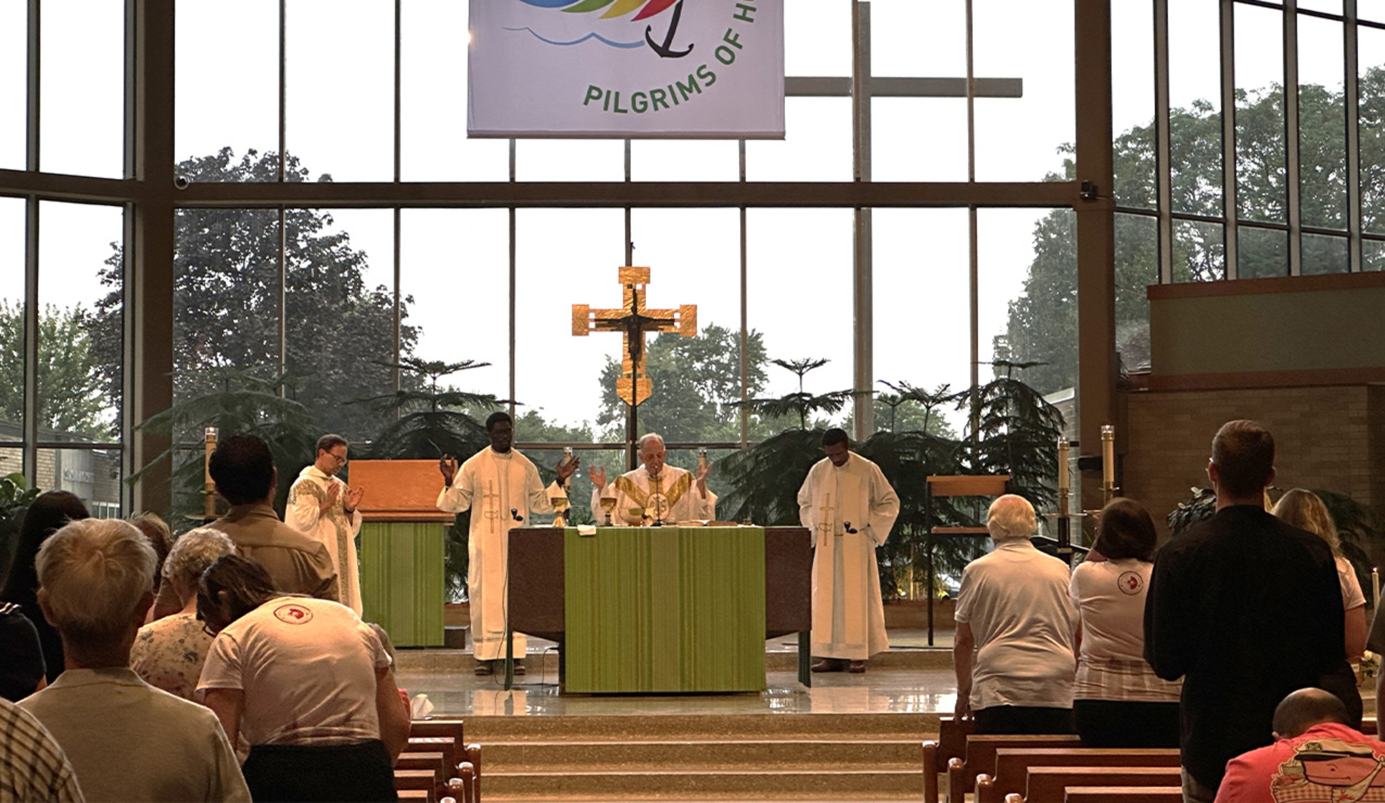 After Mass, there was a candlelight procession in the church followed by an ice cream social featuring the two Jubilee Year ice cream flavors, Pilgrim Tracks and Jubilee Indulgence. Pilgrims also could visit the shrine and get their Jubilee Year passports stamped. Several people said it was their first visit to the shrine.