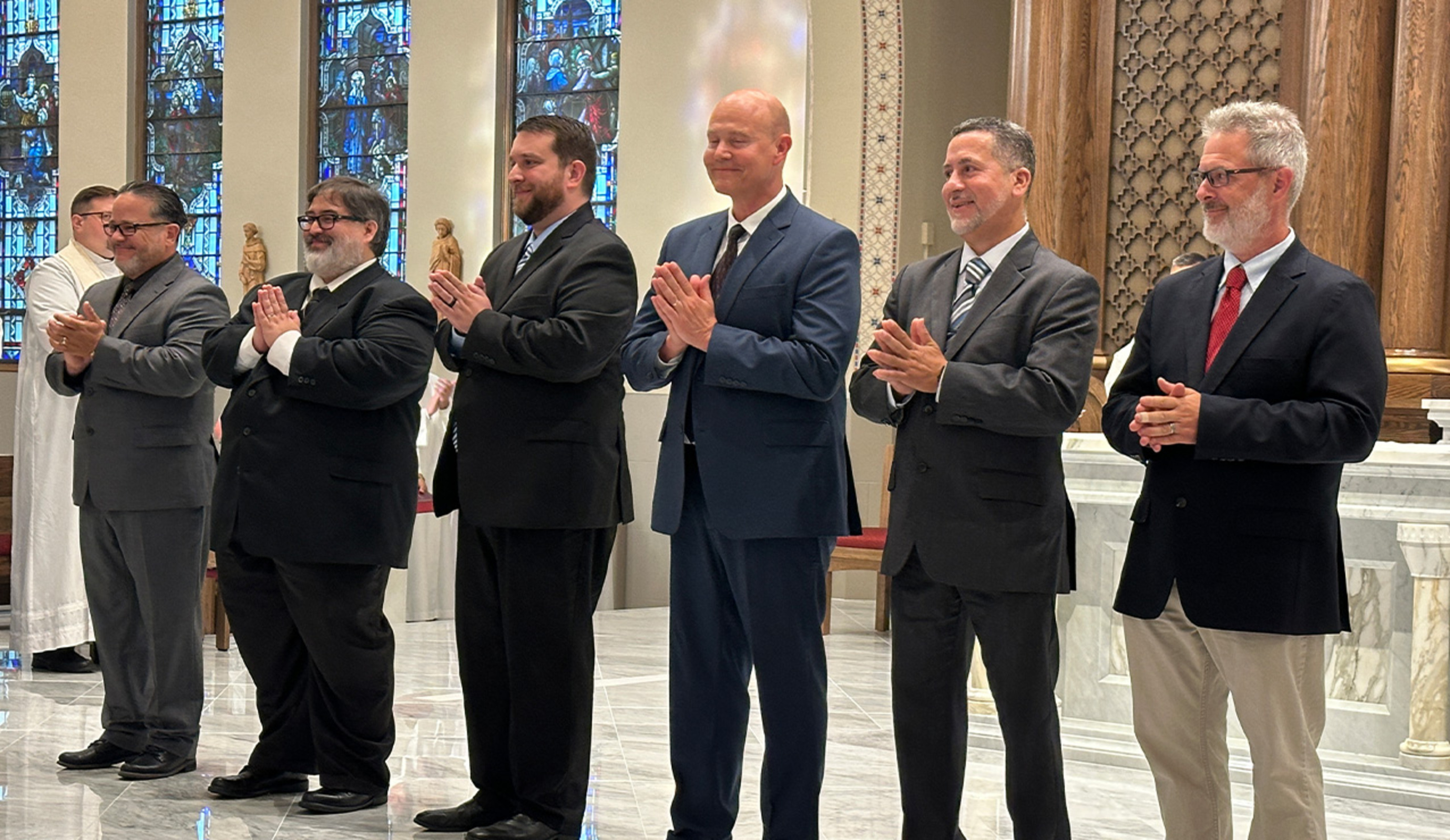 Six men were admitted to candidacy during a Mass on Aug. 8 at the Center for Pastoral Leadership in Wickliffe. Deacon George Malec, director of the permanent diaconate program, said they have completed two years as aspirants and are entering a three-year formation program as they continue discerning their call to ordination as permanent deacons.