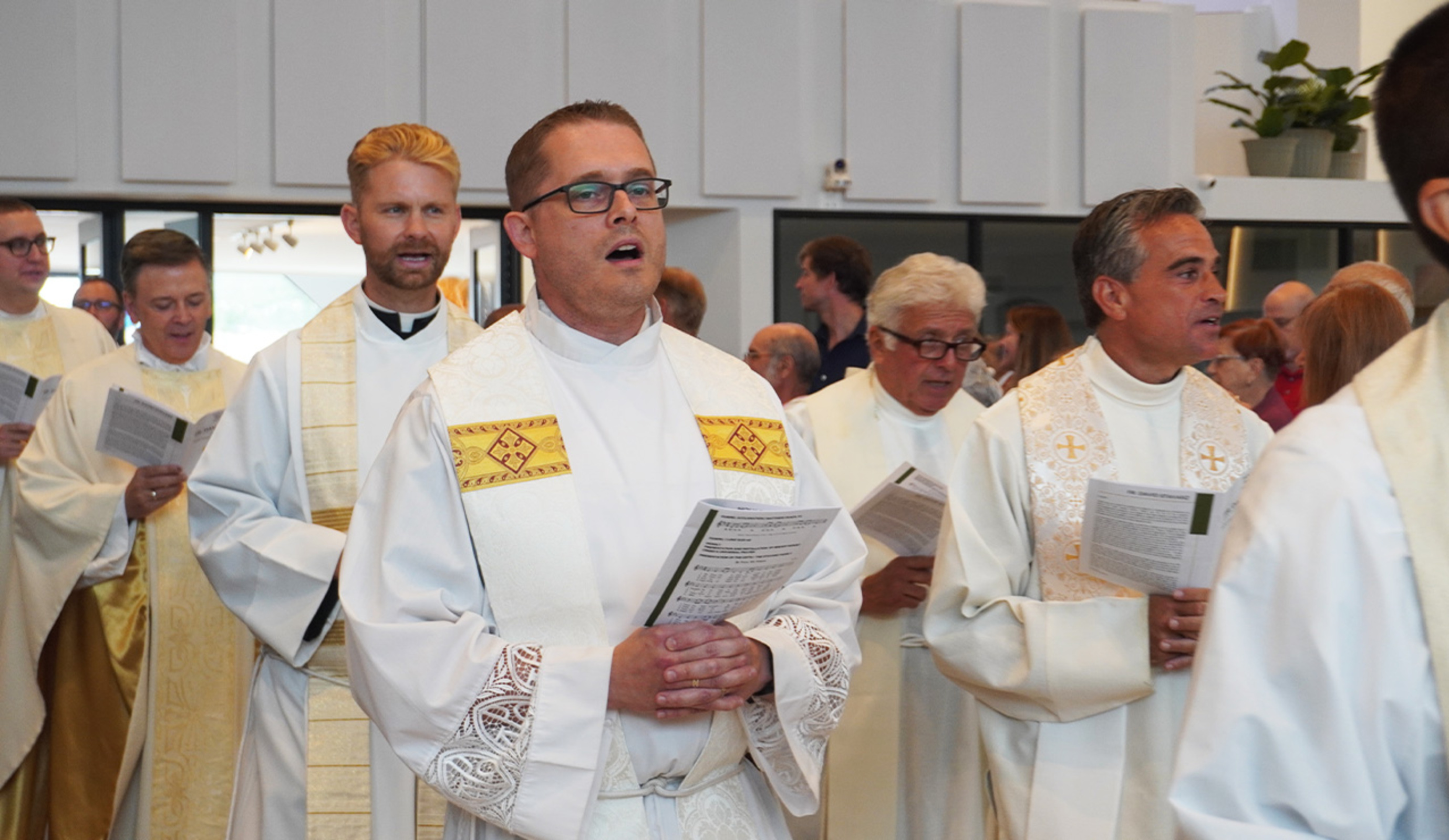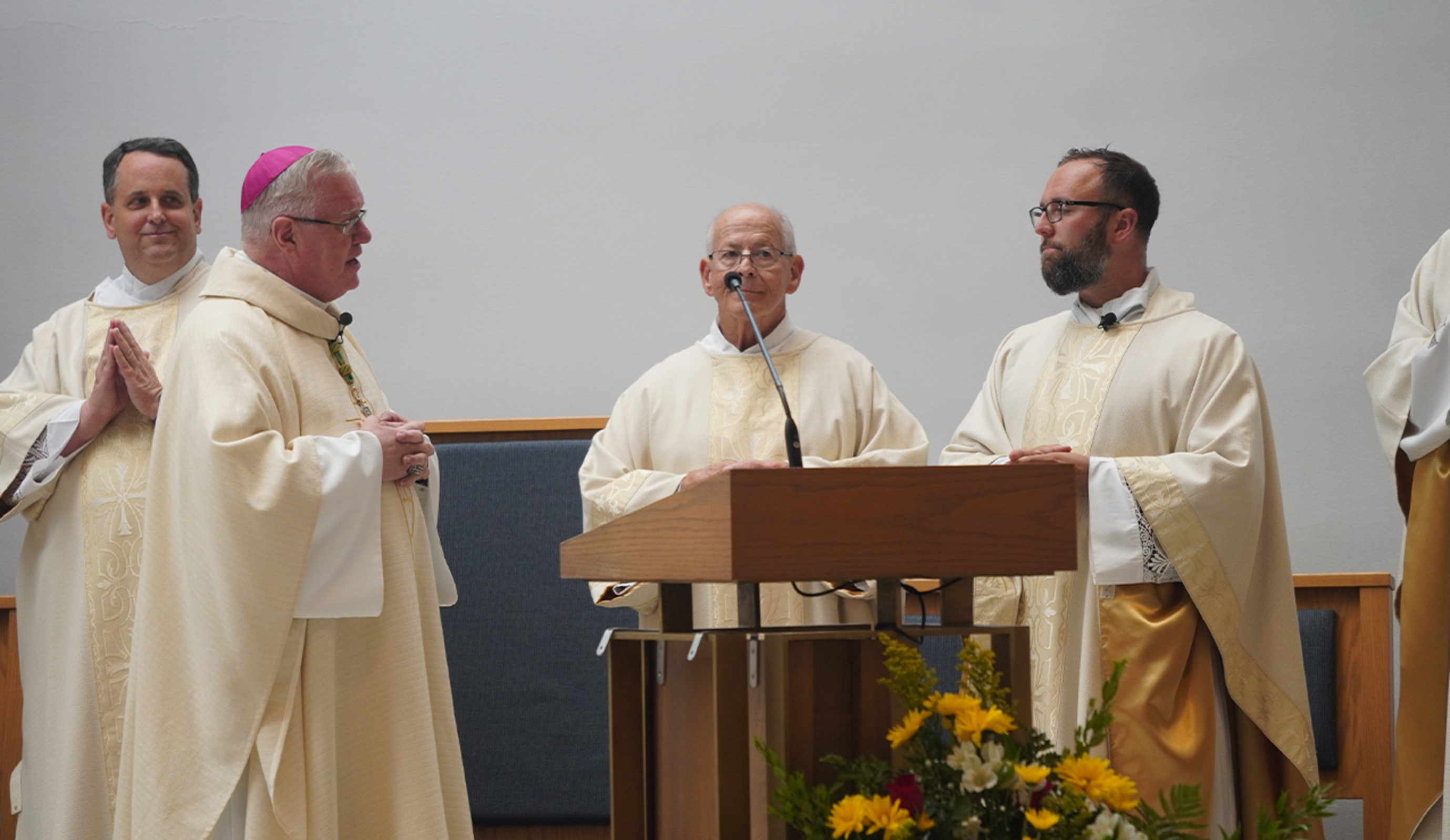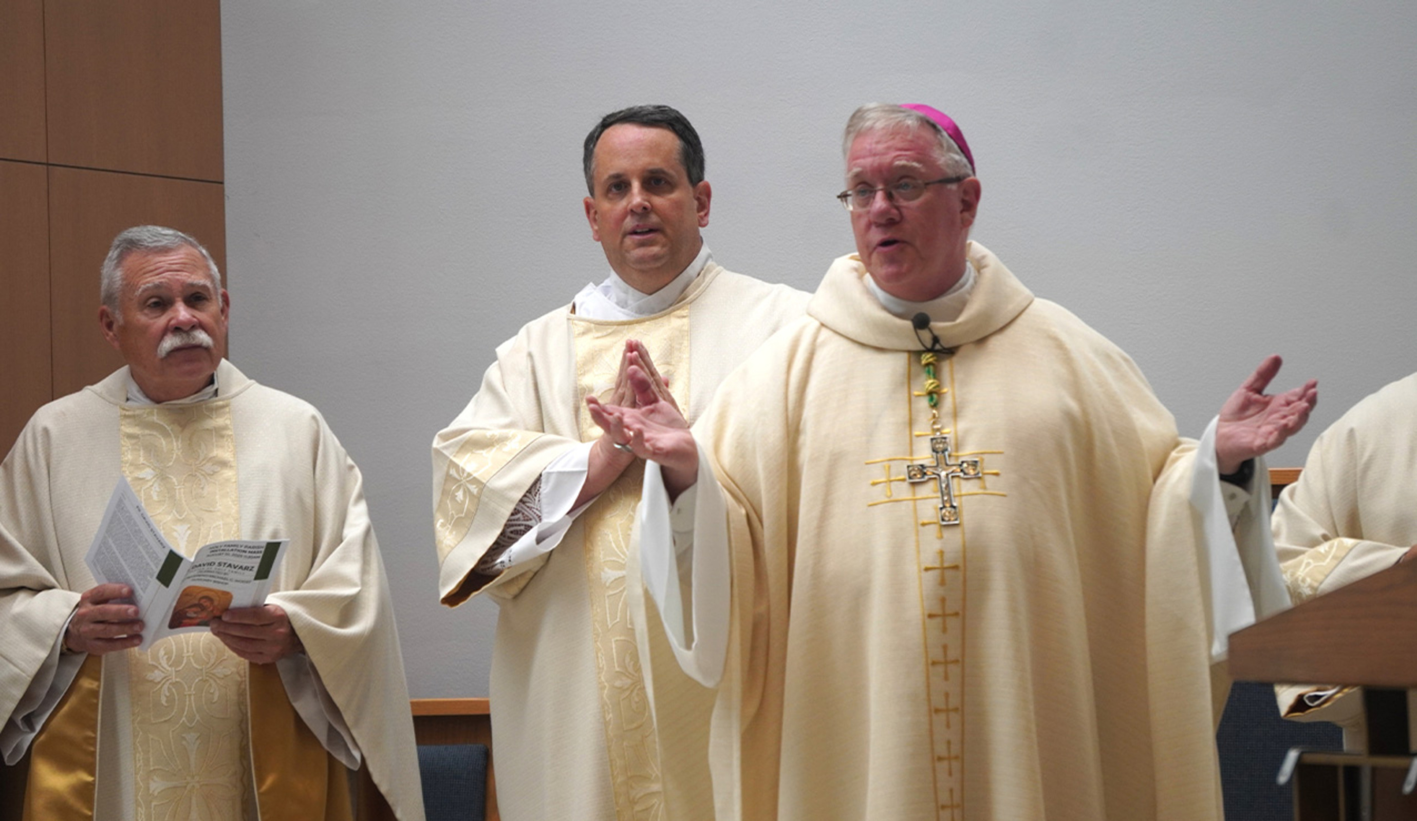 Father David Stavarz began his official ministry as pastor of Holy Family Parish in Parma during a joyful liturgy on Aug. 10. Auxiliary Bishop Michael Woost was the celebrant with Father Stavarz and several other priests concelebrating.