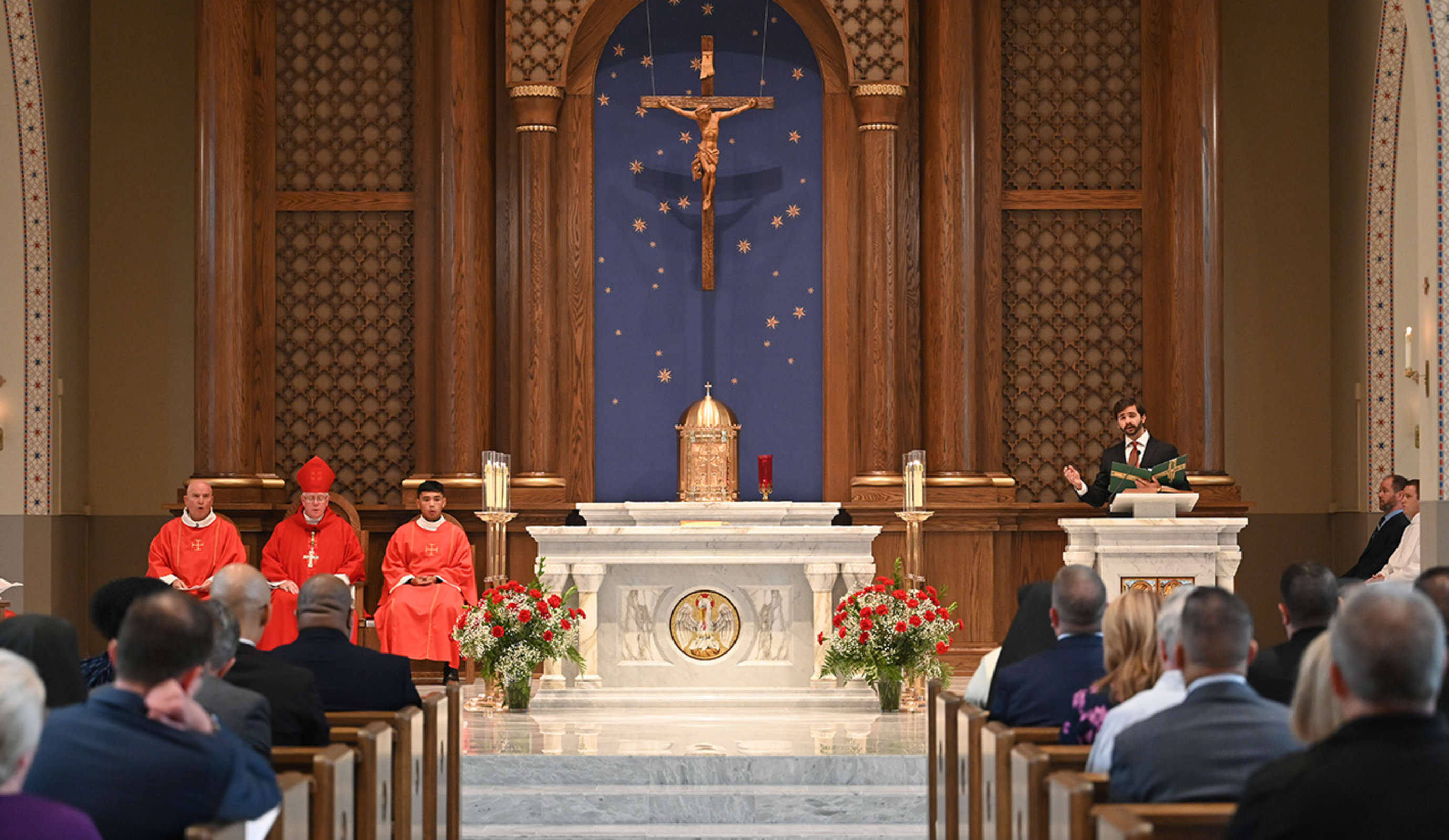 The Mass, which traditionally begins each new formation year, was celebrated by Auxiliary Bishop Michael Woost. Concelebrants included Father Andy Turner, president/rector of the seminaries, Father Mick Joyce, OFM Cap, Father Bill Bouhall and Father David Bline. Assisting at the altar was Deacon George Malec, who directs the permanent diaconate formation program.