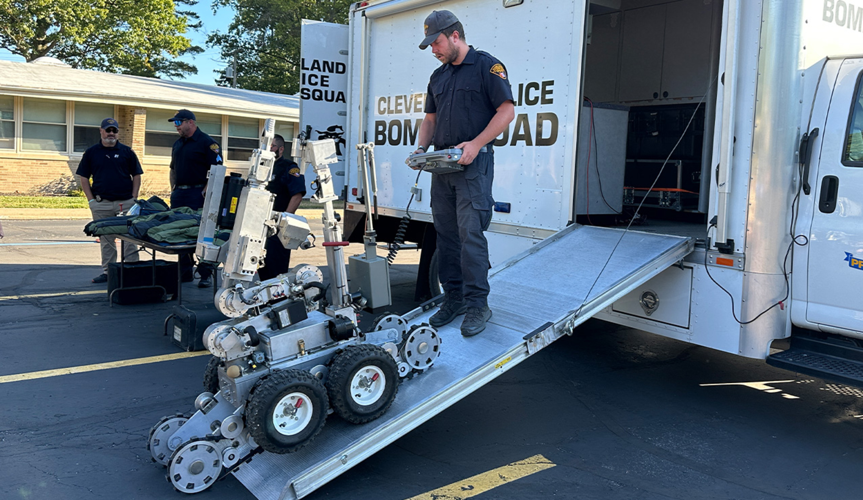This year, CPD brought several vehicles, a robot from the bomb squad and K9 Scout to the school. They lined up in the back parking lot on the warm, sunny Friday morning as a steady stream of students visited and collected souvenir items. Among the most popular attractions were trying the intercom and siren on the police car, watching the bomb squad robot move via remote control and interacting with Scout. They also peered into the various vehicles, and some took advantage of a chance to pop their head through the opening in the roof of the SWAT vehicle.