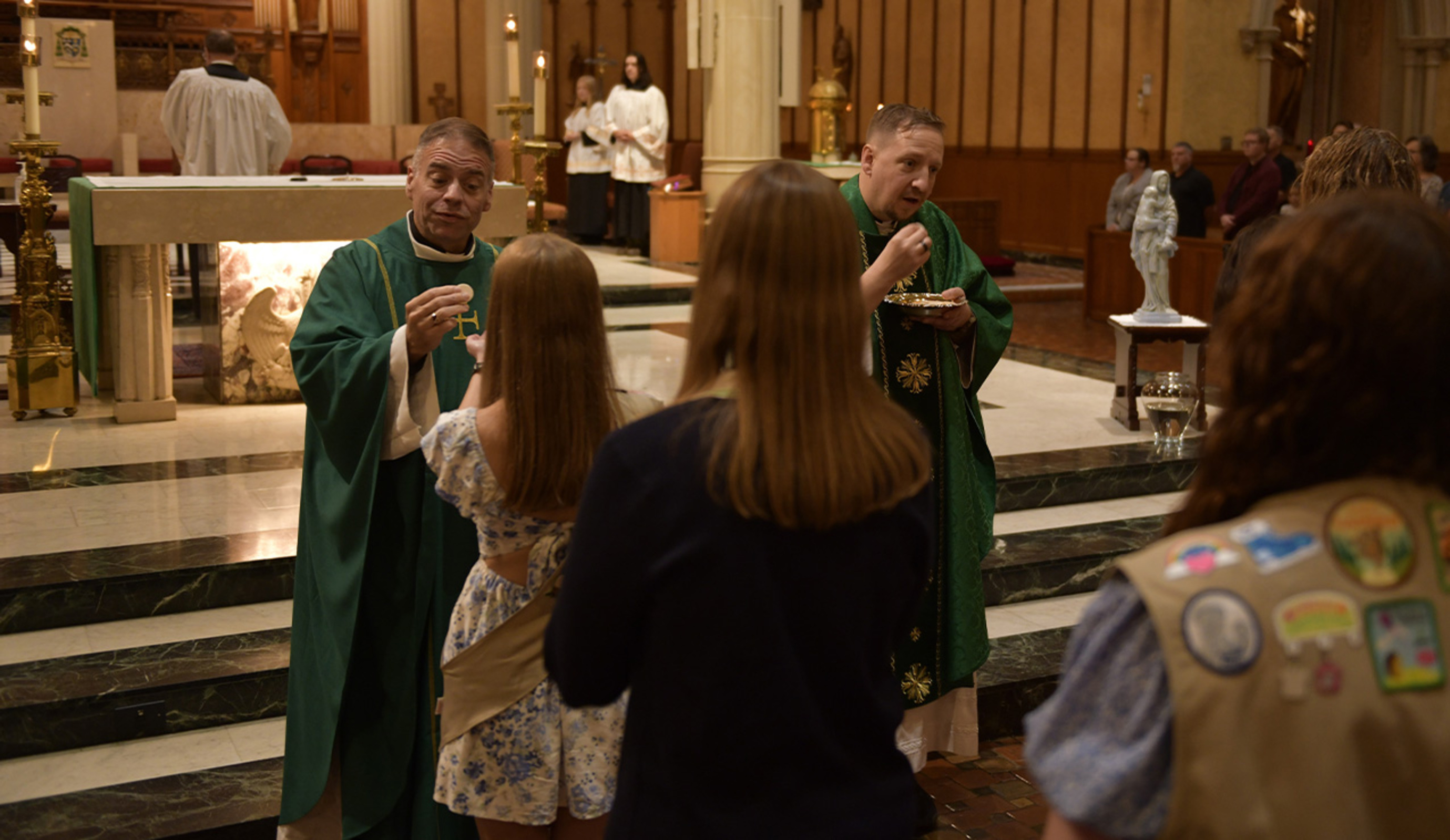 “Come here not to stay the same. Come to be changed,” Father John Pfeifer told scouts and their families who gathered Oct. 12 in the Cathedral of St. John the Evangelist for the annual Diocesan Court of Honor liturgy. Father Pfeifer and Father Bob Stec, Diocesan Catholic Committee on Scouting chaplains, celebrated the Mass.