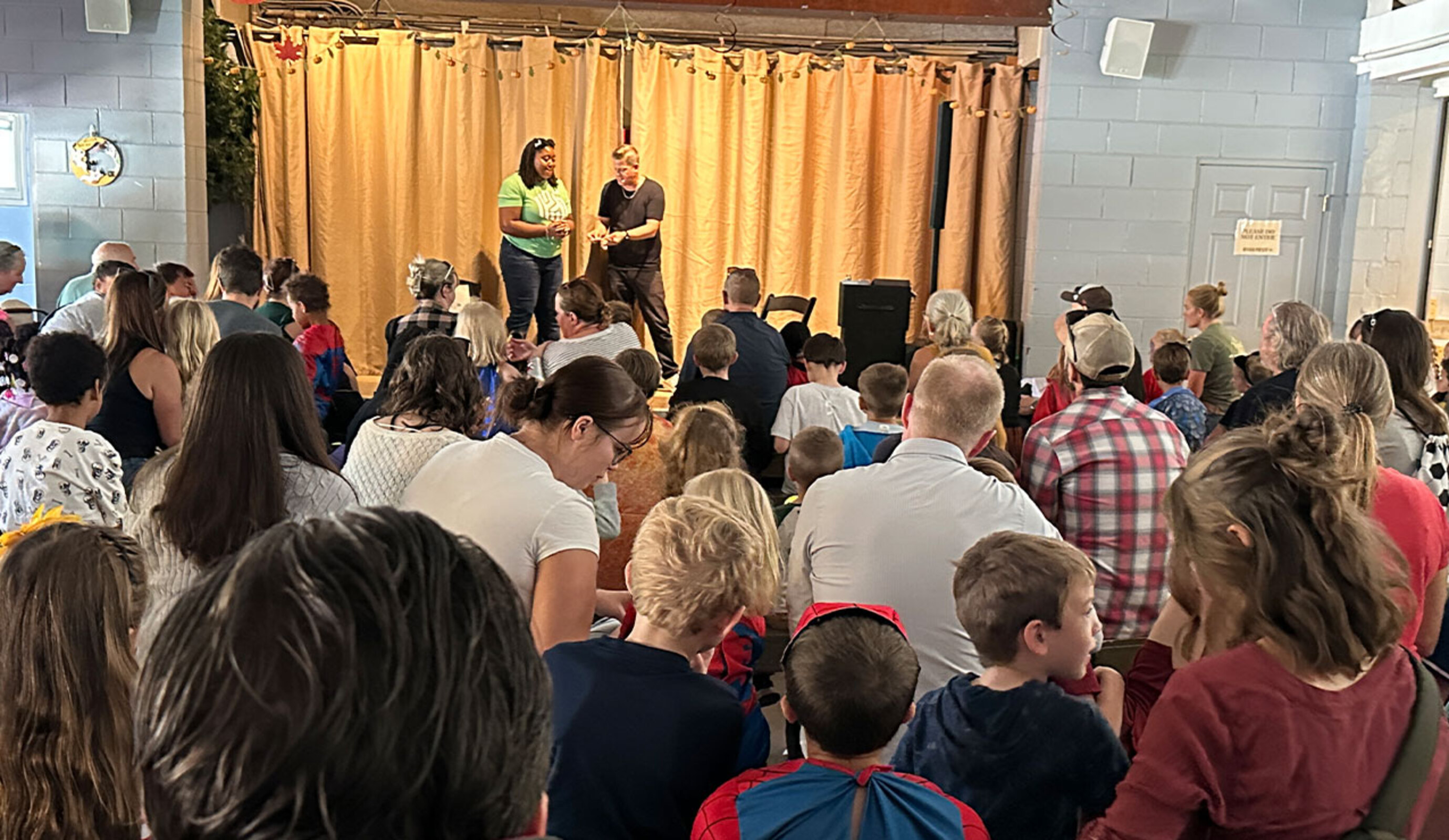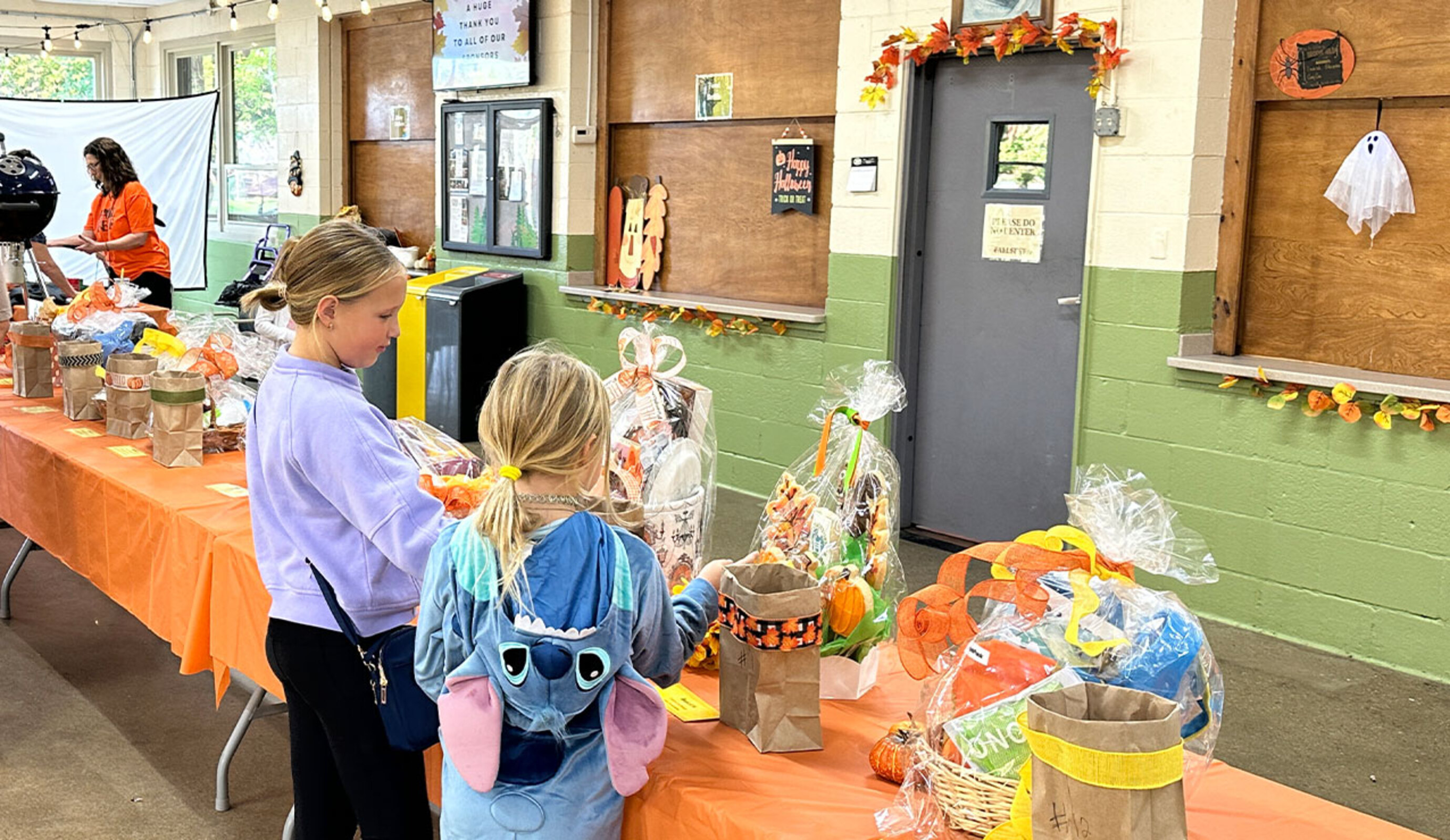 Visitors drove into the camp’s festively decorated entrance and then were guided to parking spaces by volunteers. They checked in at the registration tent, where everyone got a Fall Fest sticker. Those participating in the scavenger hunt got a map and a paper with 15 questions to complete. Some questions required hunting for an item and attaching a sticker to the paper, while others were fill-in-the-blank questions. Completed sheets were dropped off at the dining hall, where participants received a ticket entering them into a raffle for a Camp Christopher basket.