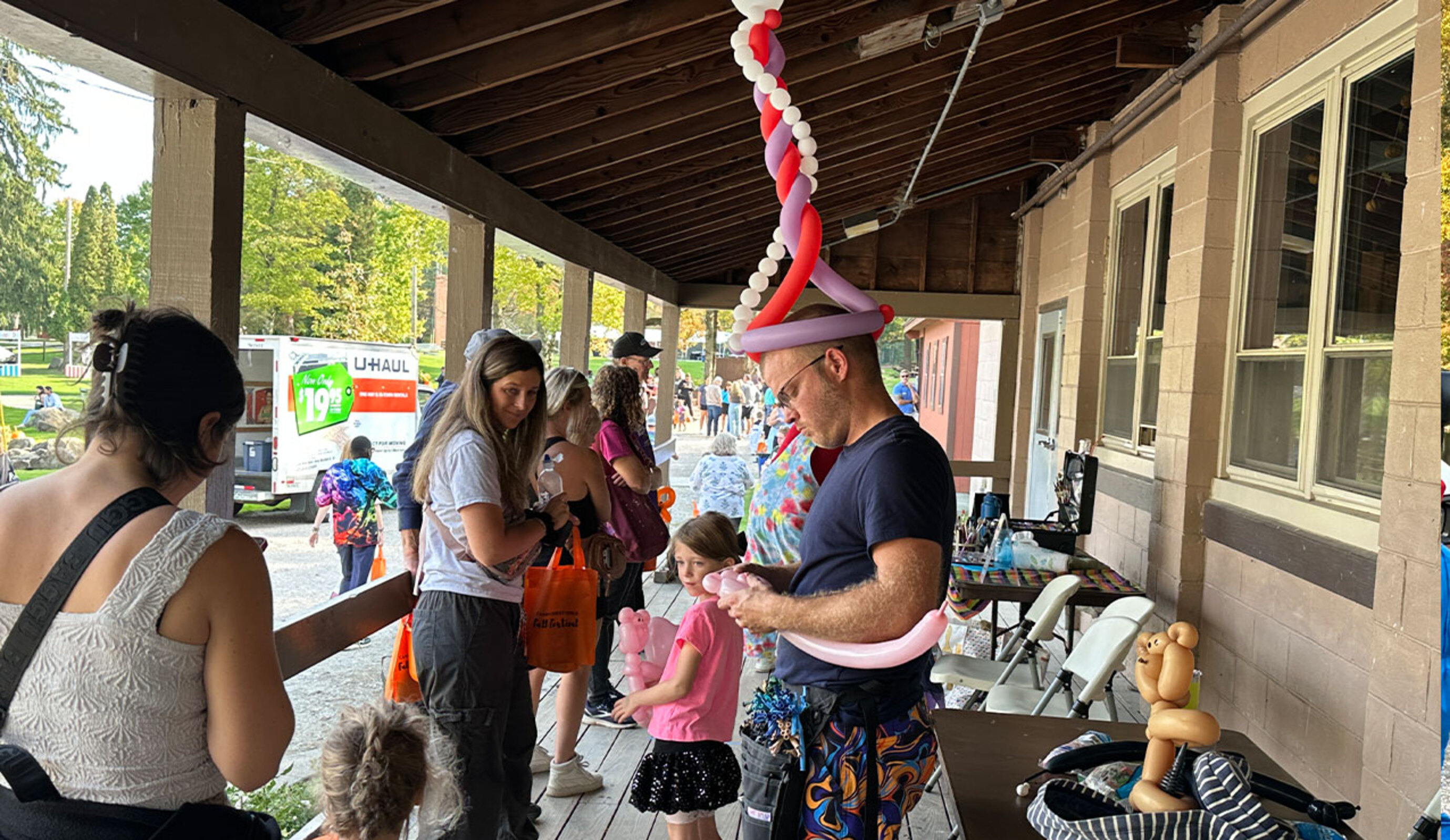 There was an area featuring family-friendly games, trick-or-treating around the campgrounds, a small petting zoo, a photo opp where visitors could measure their height, candy stations, vendor and craft tables, raffle baskets to support Catholic Charities Summit County, a magic show, improv show, six hay rides throughout the afternoon, face painting, a balloon artist and more. Visitors also could climb on a tractor and pose for photos. The camp store was open selling camp merchandise, popcorn and adult beverages.