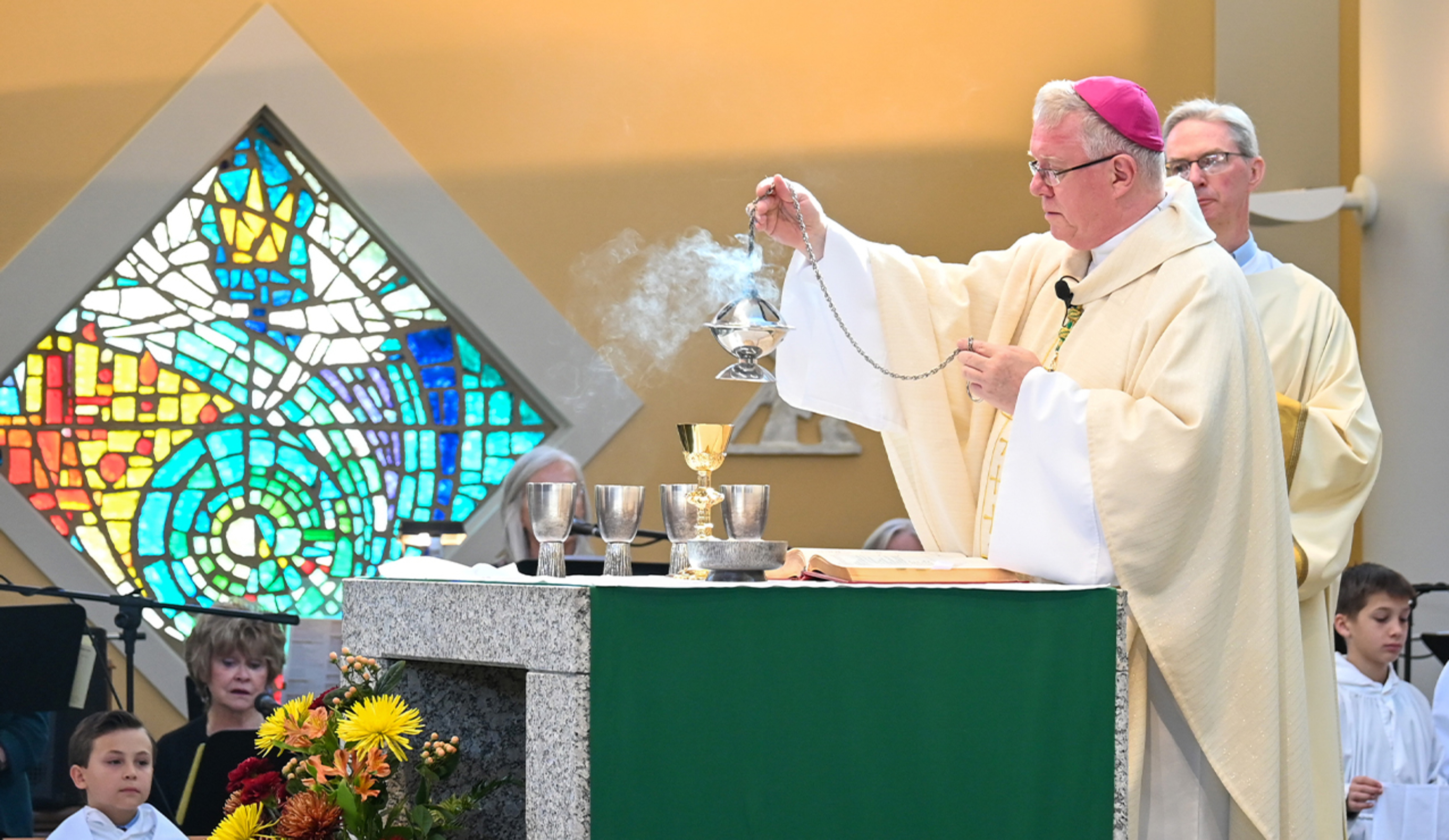 Auxiliary Bishop Michael Woost was the principal celebrant of the Mass on Oct. 26. Father Cochrac is St. Justin Martyr’s fourth pastor. The Eastlake parish was established in 1962