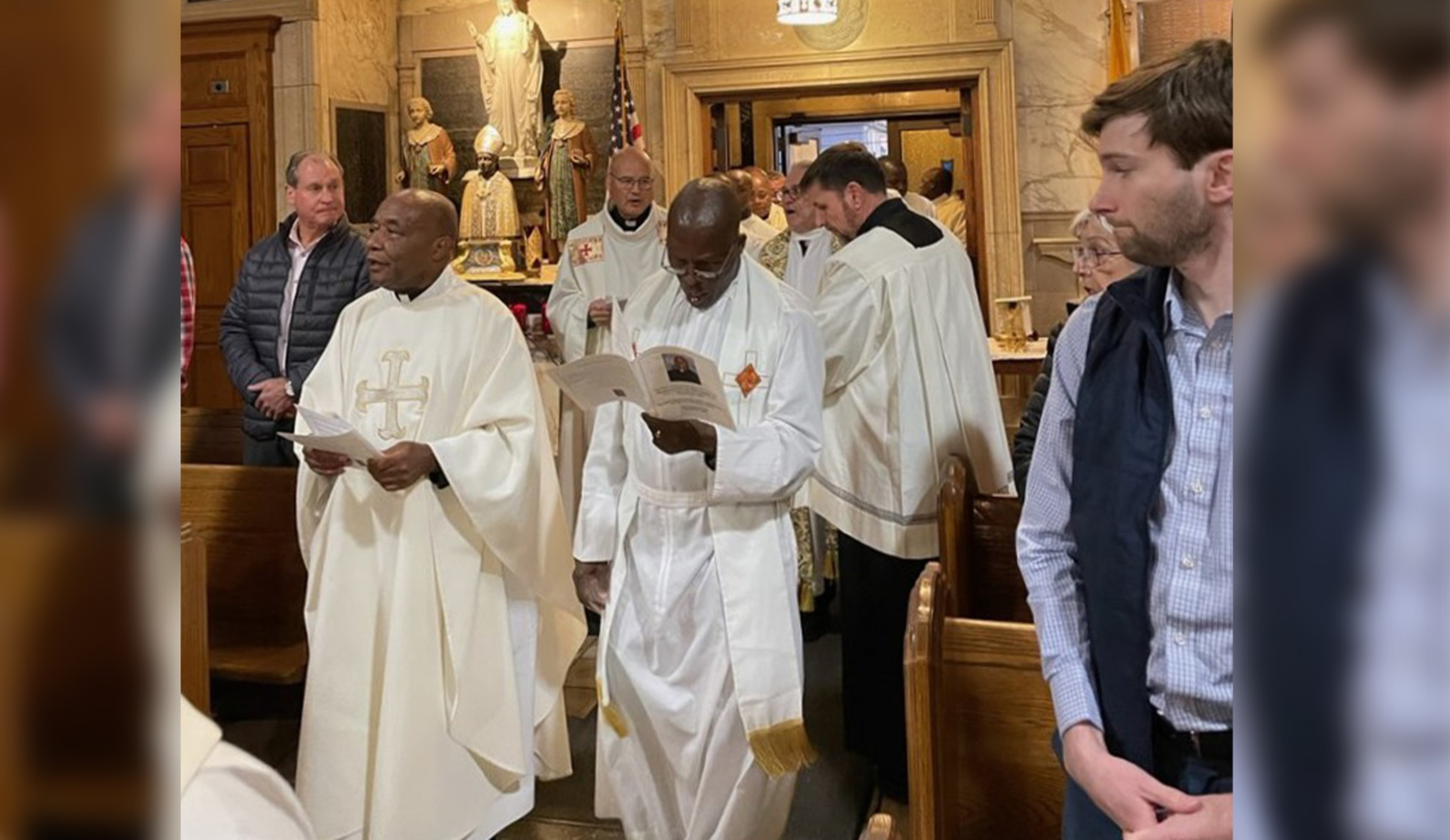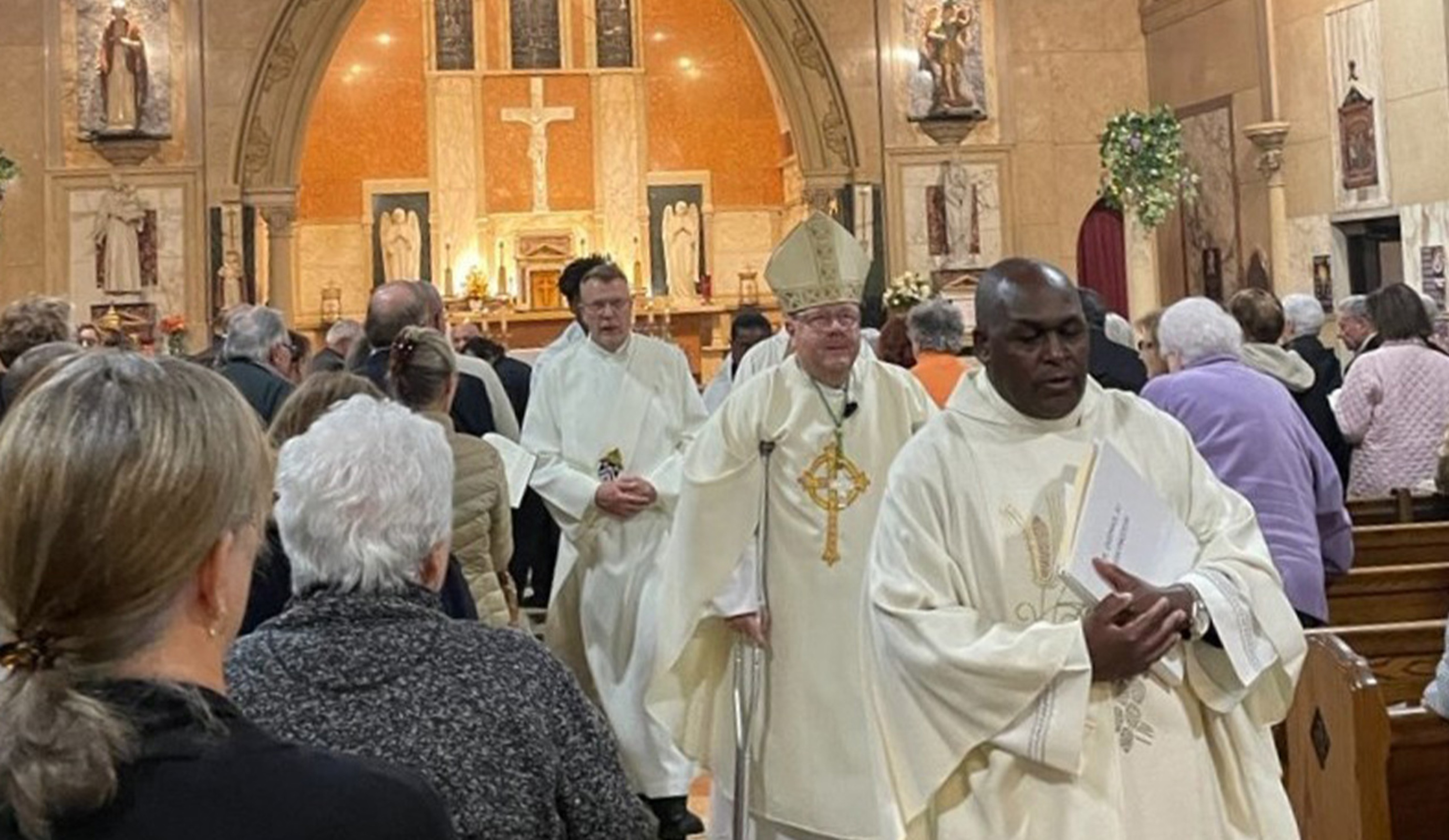 Bishop Edward Malesic installed Father Byarugaba as St. Anthony’s fifth pastor during a Mass on Nov. 3. Several members of his congregation – the Apostles of Jesus – were among the concelebrants. Deacon Bob Stegmaier assisted with the liturgy, which was attended by parishioners and friends.