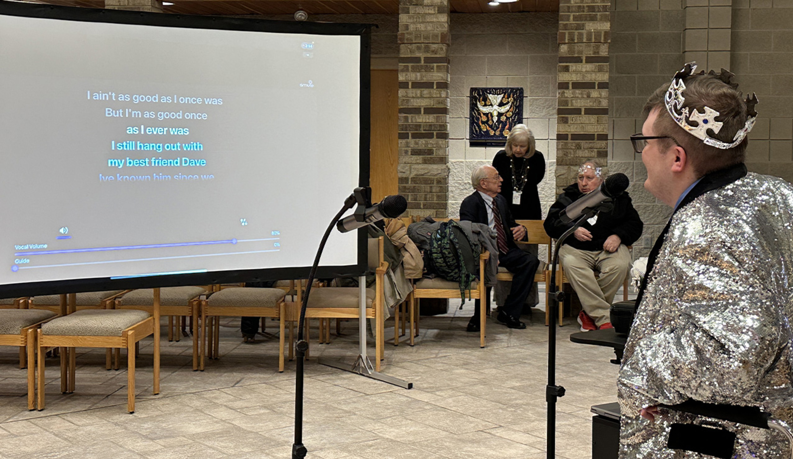 Some had attended the event in previous years. Many dressed for the occasion, including one guest who was enjoying karaoke while wearing a silver sequined jacket. Some of the ladies wore long gowns and had their hair and makeup done just for the event.