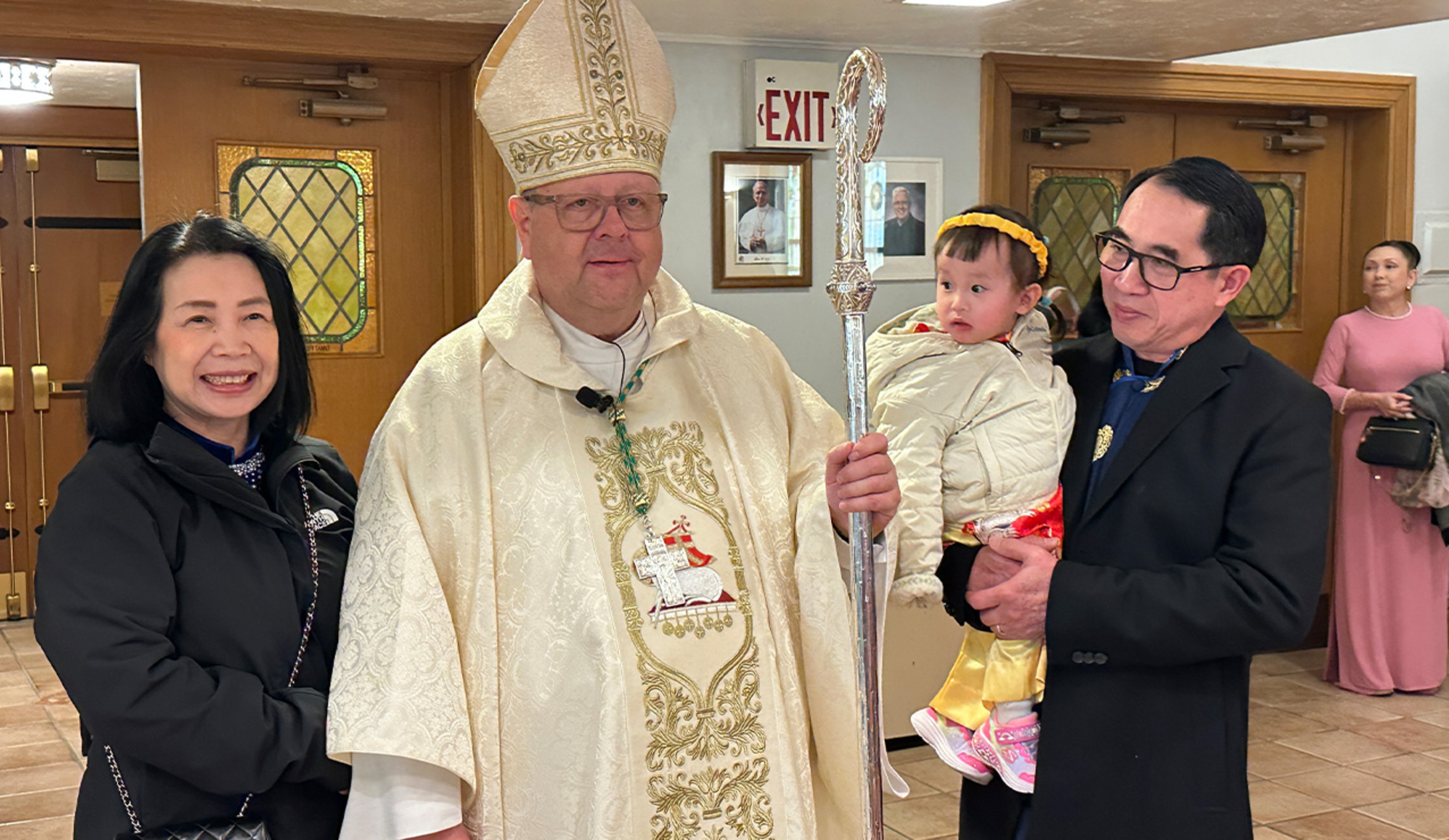 The Vietnamese American Apostolate at St. Boniface Parish in Cleveland observed Tet, the lunar new year, by welcoming Bishop Edward Malesic on Feb. 15.