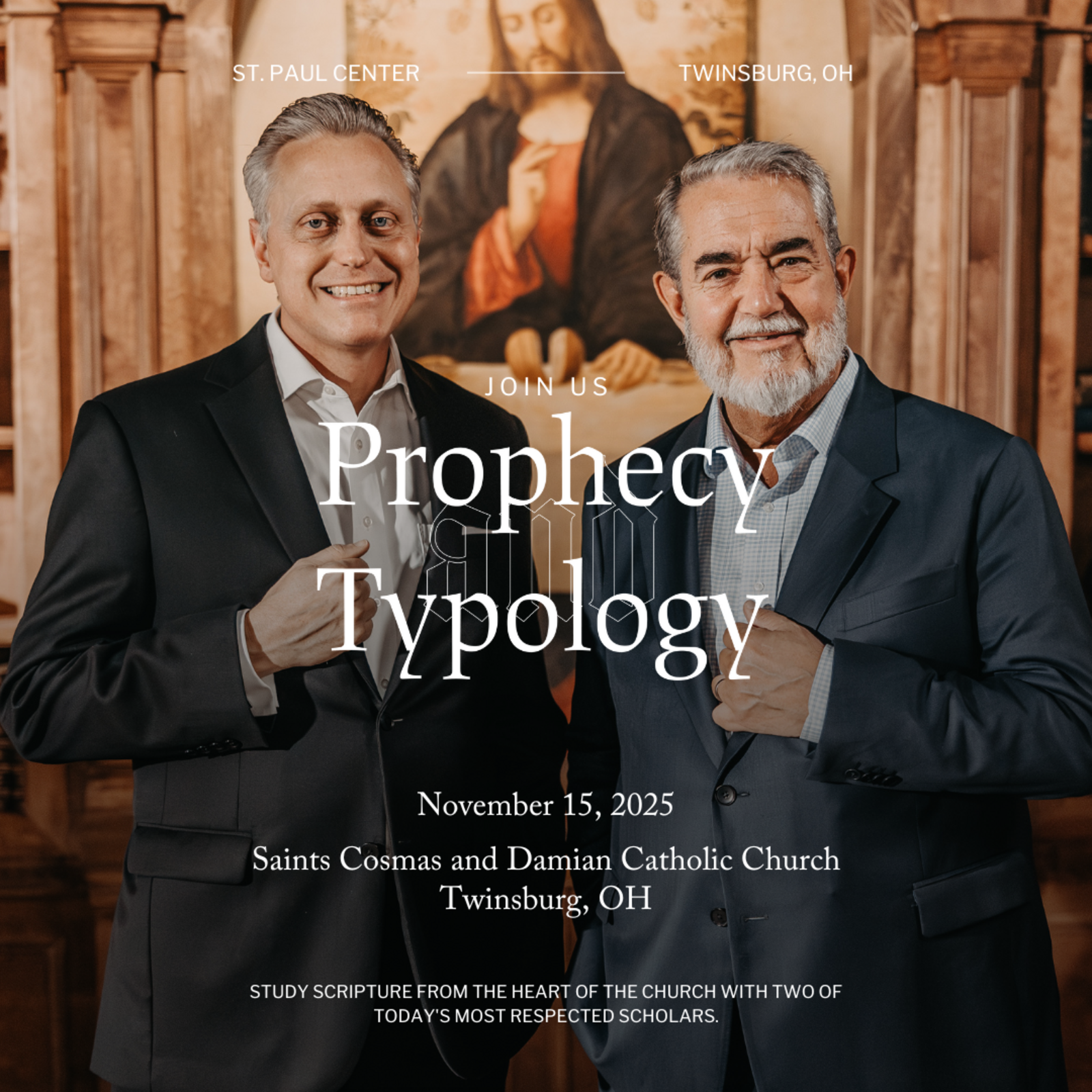Scott Hahn and John Bergsma from the St. Paul Center will be at Ss. Cosmas and Damian church for a day of presentations, Scripture study, and prayer. All are welcome to join us for this wonderful event! Tickets are $35 and you can get them through the St. Paul Center website.