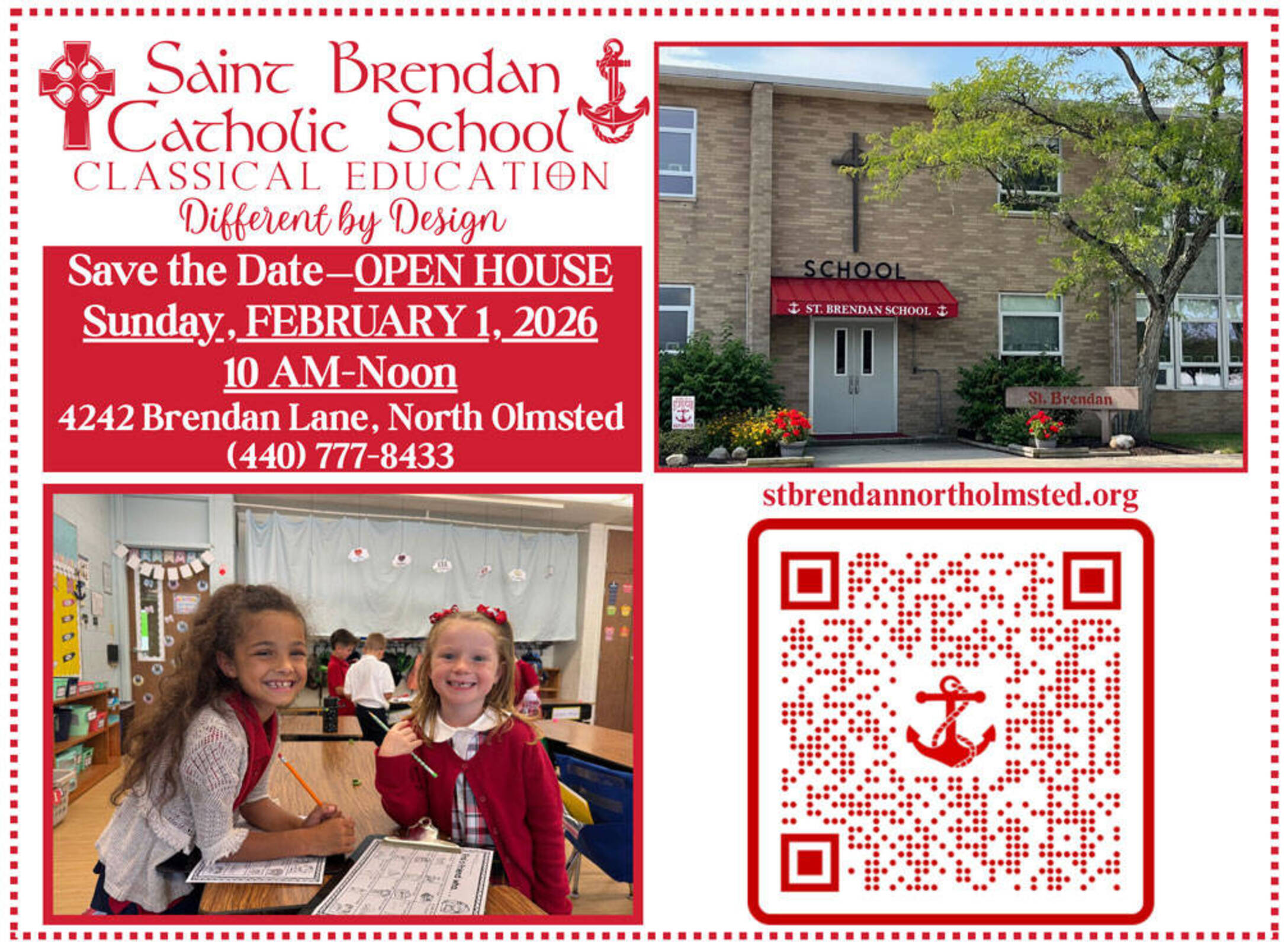 Come join us at St. Brendan Catholic School's Open House, Art Expo, and Science Fair to see the Classical Education difference! We look forward to seeing you at 4242 Brendan Lane, North Olmsted, OH 44070 from 10am-12pm. For more information, please contact us at (440) 777-8433 or school.stbrendannortholmsted.org.