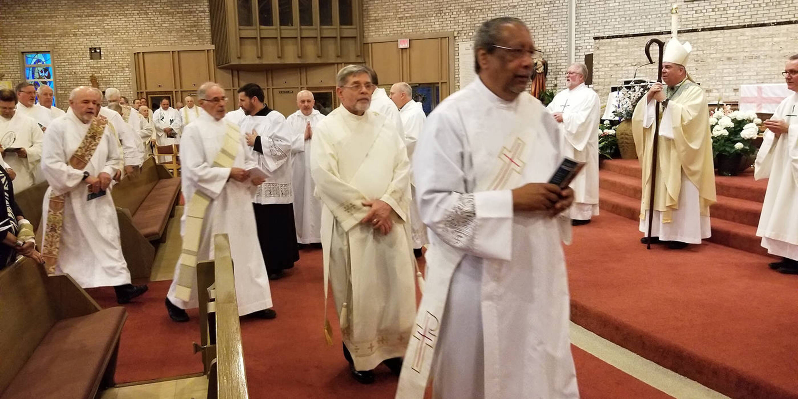 Members of the diaconate community from all parts of the Diocese of Cleveland came to St. Basil the Great Church in Brecksville on May 7 to celebrate the significant jubilee years of permanent deacons serving the diocese. Bishop Nelson Perez was the main celebrant for the Mass which brought together deacons celebrating jubilee years, their family members and many others from the diocesan diaconate community. They prayed together, remembering permanent deacons who have served, those currently serving and those still in formation.