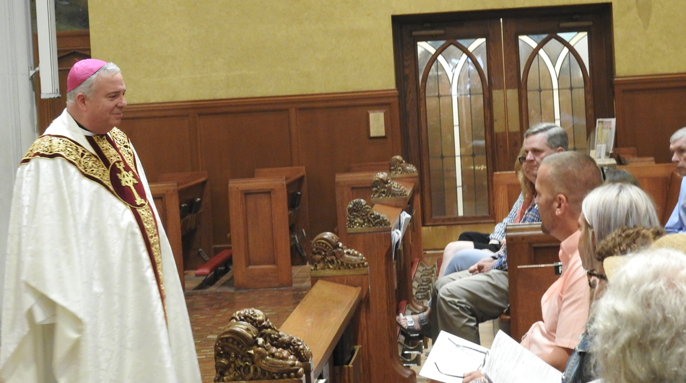 Bishop Perez told the congregation that he returned recently from a retreat trip to Rome. “There are bishops and priests everywhere in Rome. Bishops and priests come and go. Bishop (Daniel) Thomas came and went,” he quipped, pointing to Toledo Bishop Daniel Thomas, who concelebrated the Mass. He was referring to Bishop Thomas’ nine months as apostolic administrator of the diocese before Bishop Perez’s appointment and installation. Bishop Thomas was in town on June 22 to attend an event.