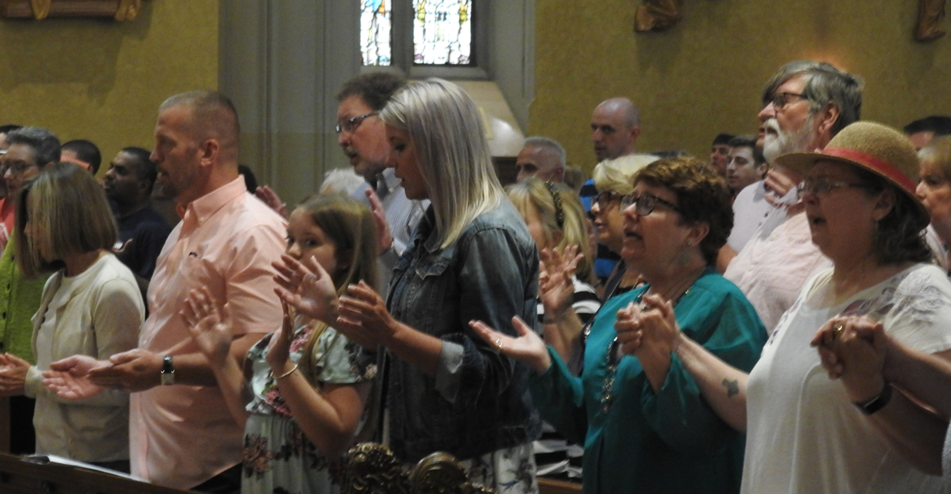 Dozens of hands popped up around the church.