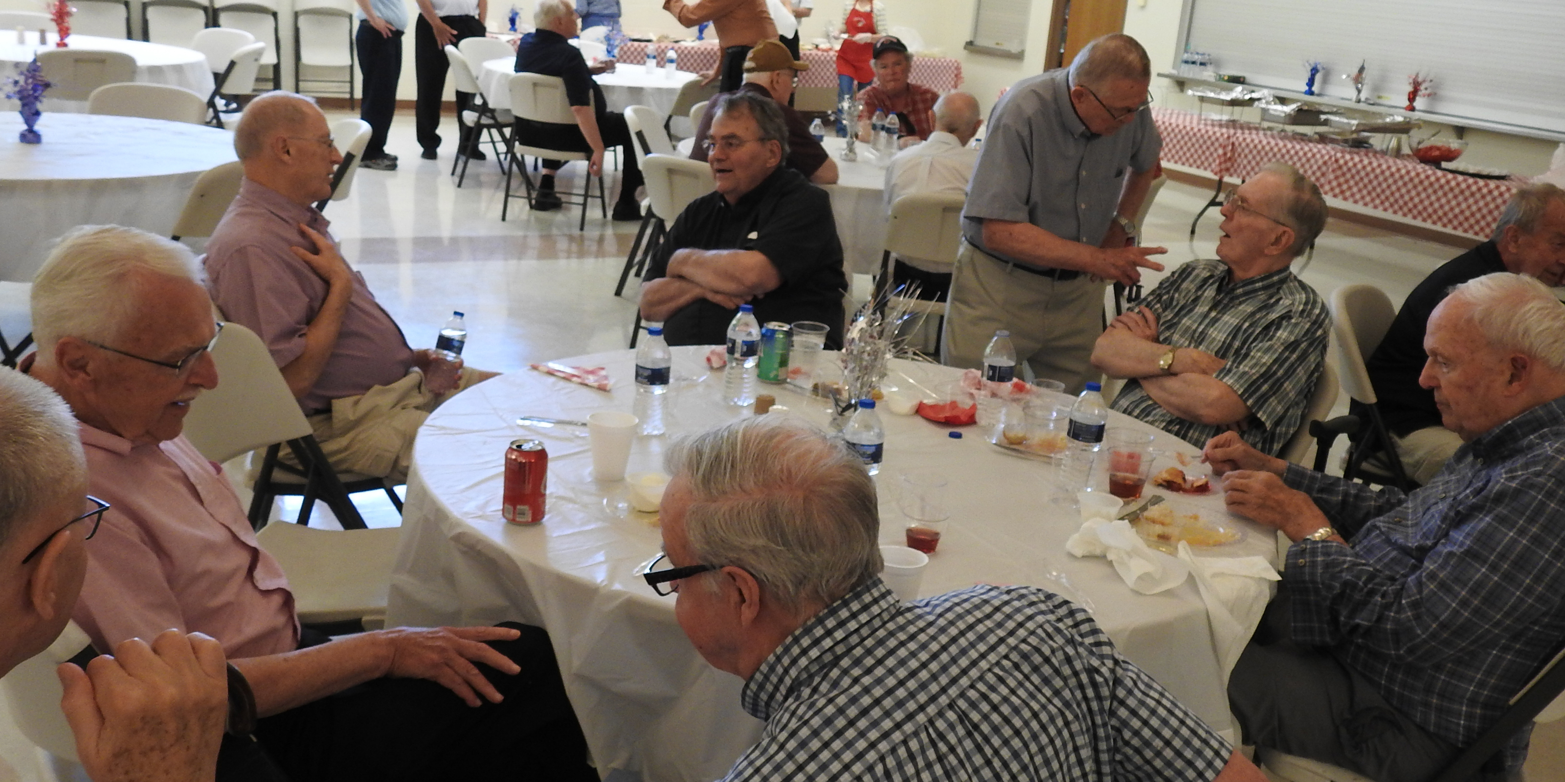 To glance around the room, it would be difficult to tell that it was a gathering of priests. They were dressed casually and chatted collegially, talking about their hobbies, trips, physical ailments and other topics. It was a chance to catch up with old friends and to visit with some fellow priests whom they don’t often see. For a few priests who travelled by van from Regina Health Center in Richfield, it also was a chance for a short excursion away from the center on a beautiful summer day.