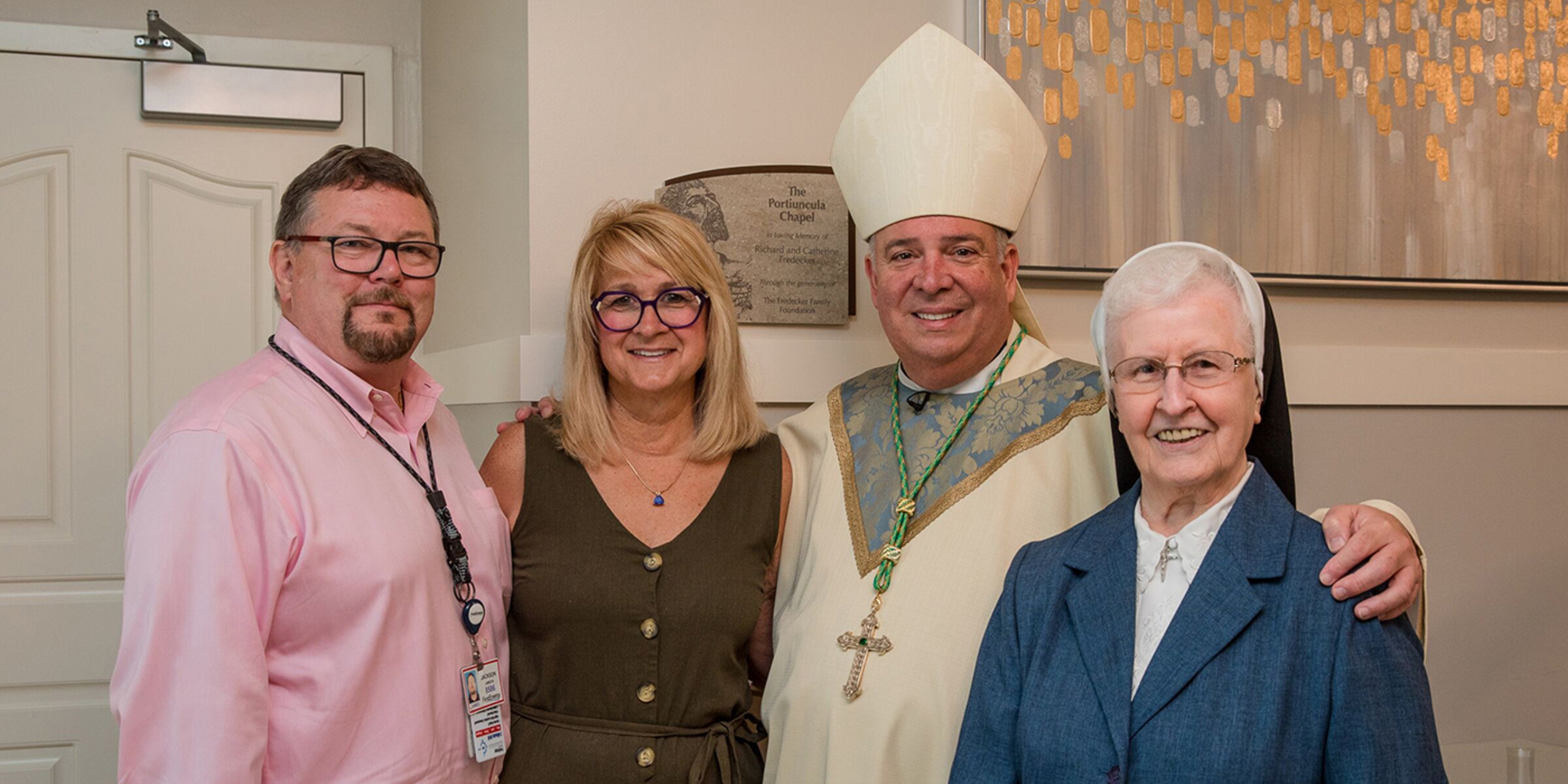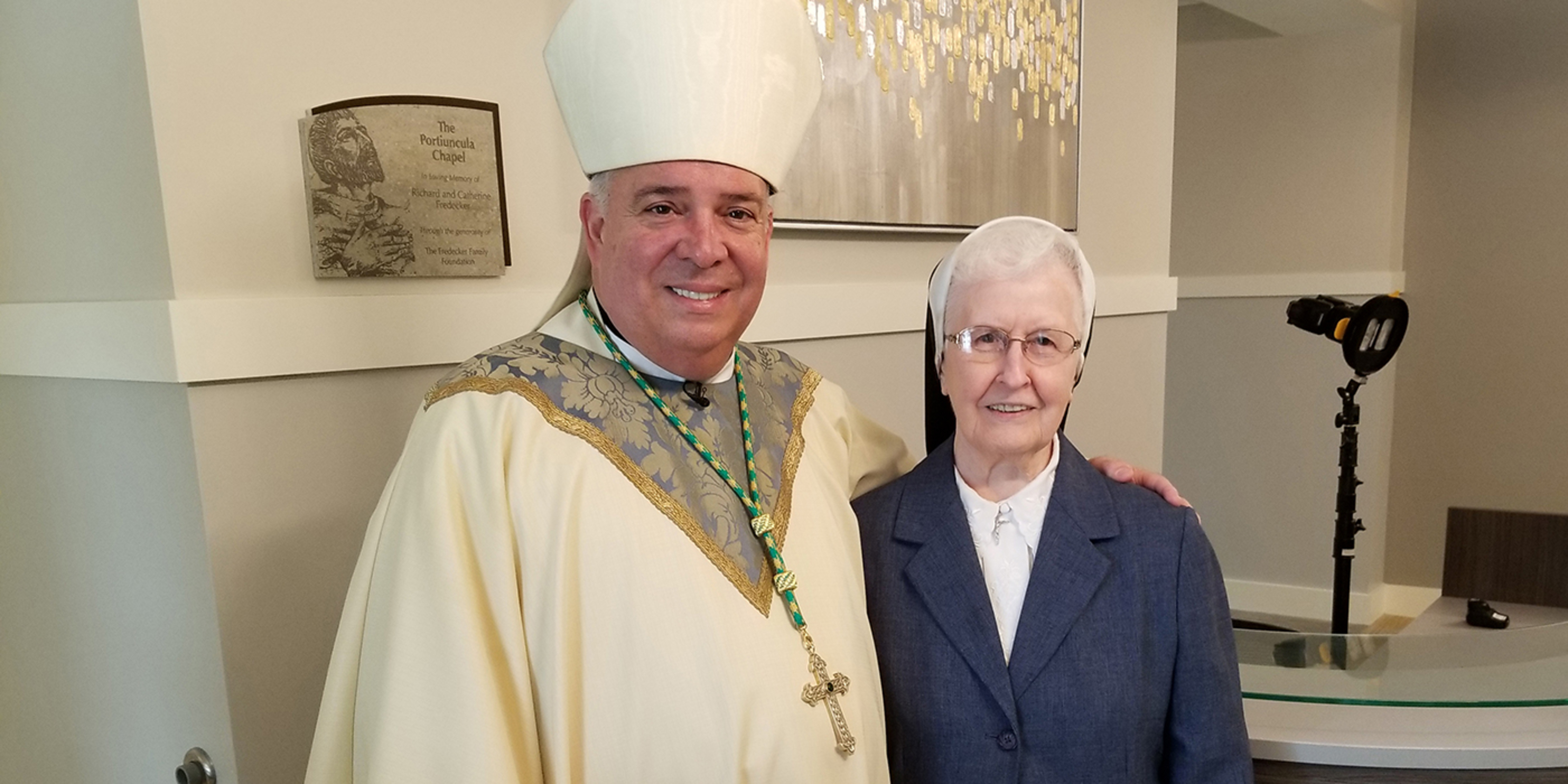 Benefactors, leaders of the Franciscan Sisters of Chicago, the president and CEO of Franciscan Ministries, local dignitaries and friends of Mount Alverna Village joined Bishop Nelson Perez, bishop of the Catholic Diocese of Cleveland, on July 16 for a special celebration of Mass during which the bishop blessed the new Portiuncula Chapel and the Ancora Memory Support residences.
