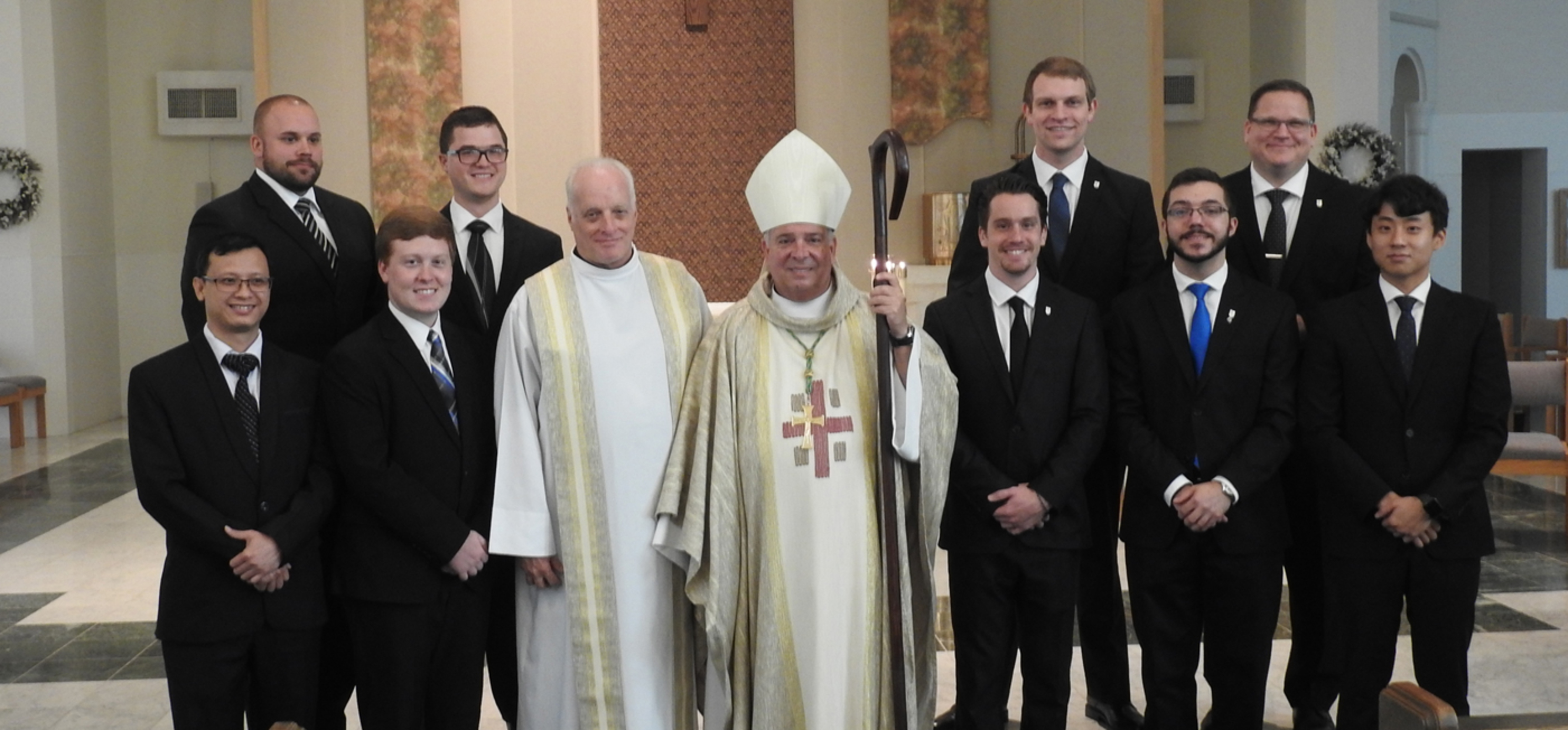 The candidates, who are in their first year of theological study and priestly formation at Saint Mary Seminary and Graduate School of Theology are Michael Francis Garvin, Maxwell Vincent Giorgi, Bradley Clark Jasko, Jeffrey Stephen Liptak, Luke Adam McNeill and Thuc Francis Tri Nguyen for the Diocese of Cleveland; Kevin John Bertleff and William Nicholas Wainio for the Diocese of Youngstown and Duckhyun Fabian Han for the Diocese of Daegu.