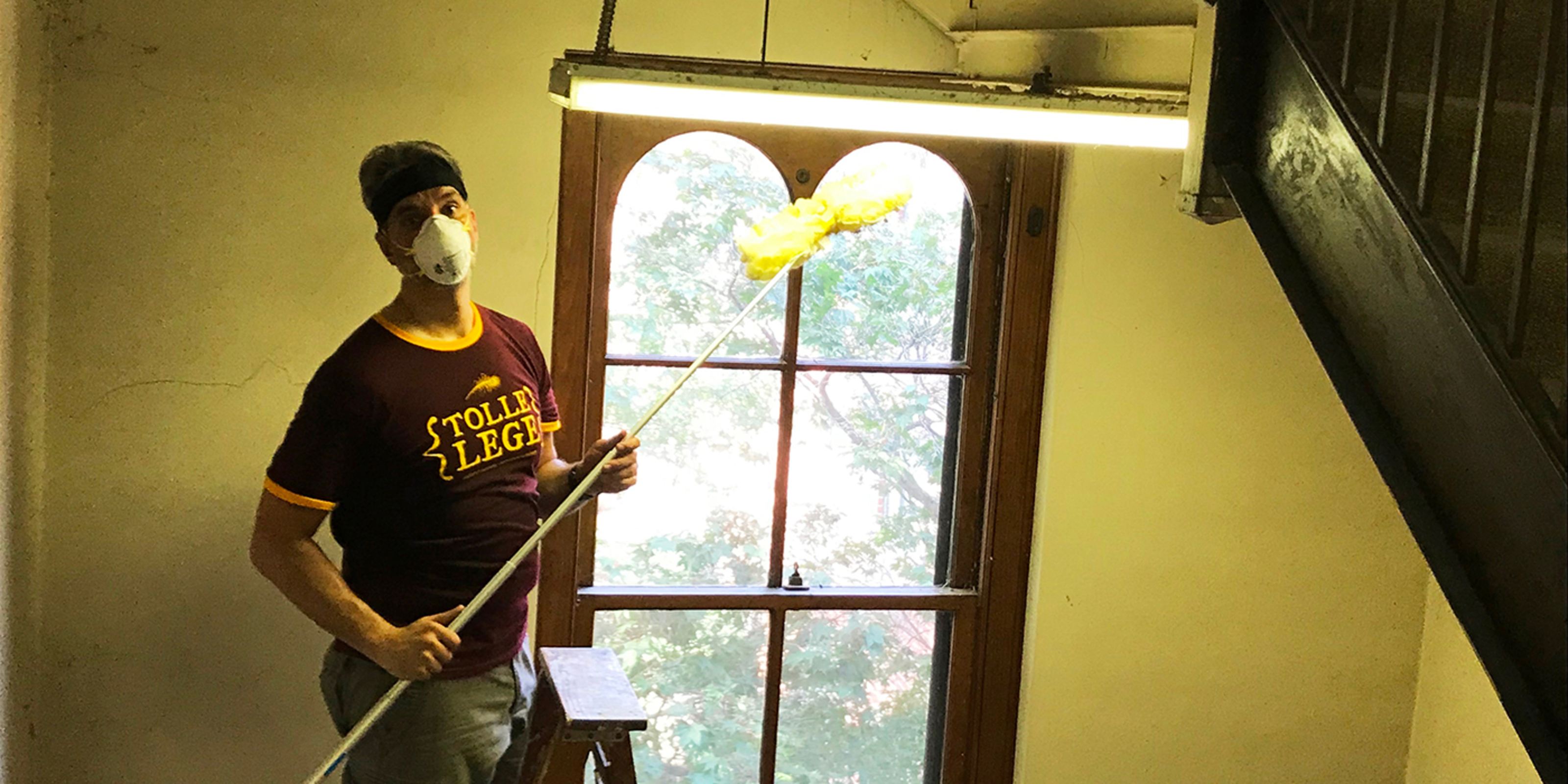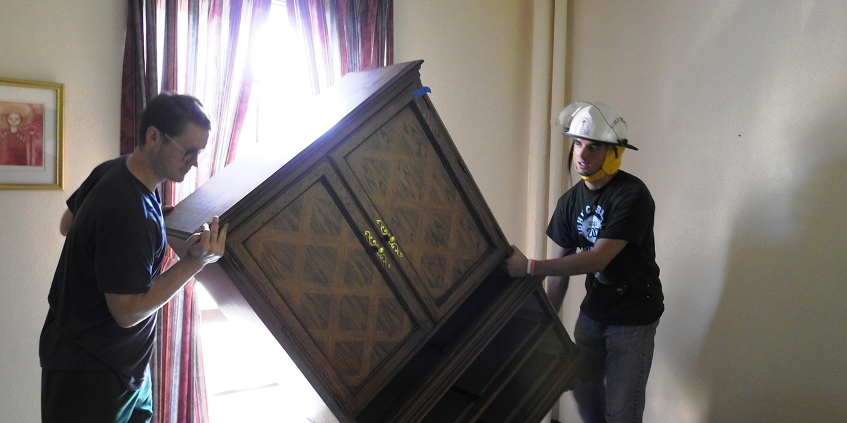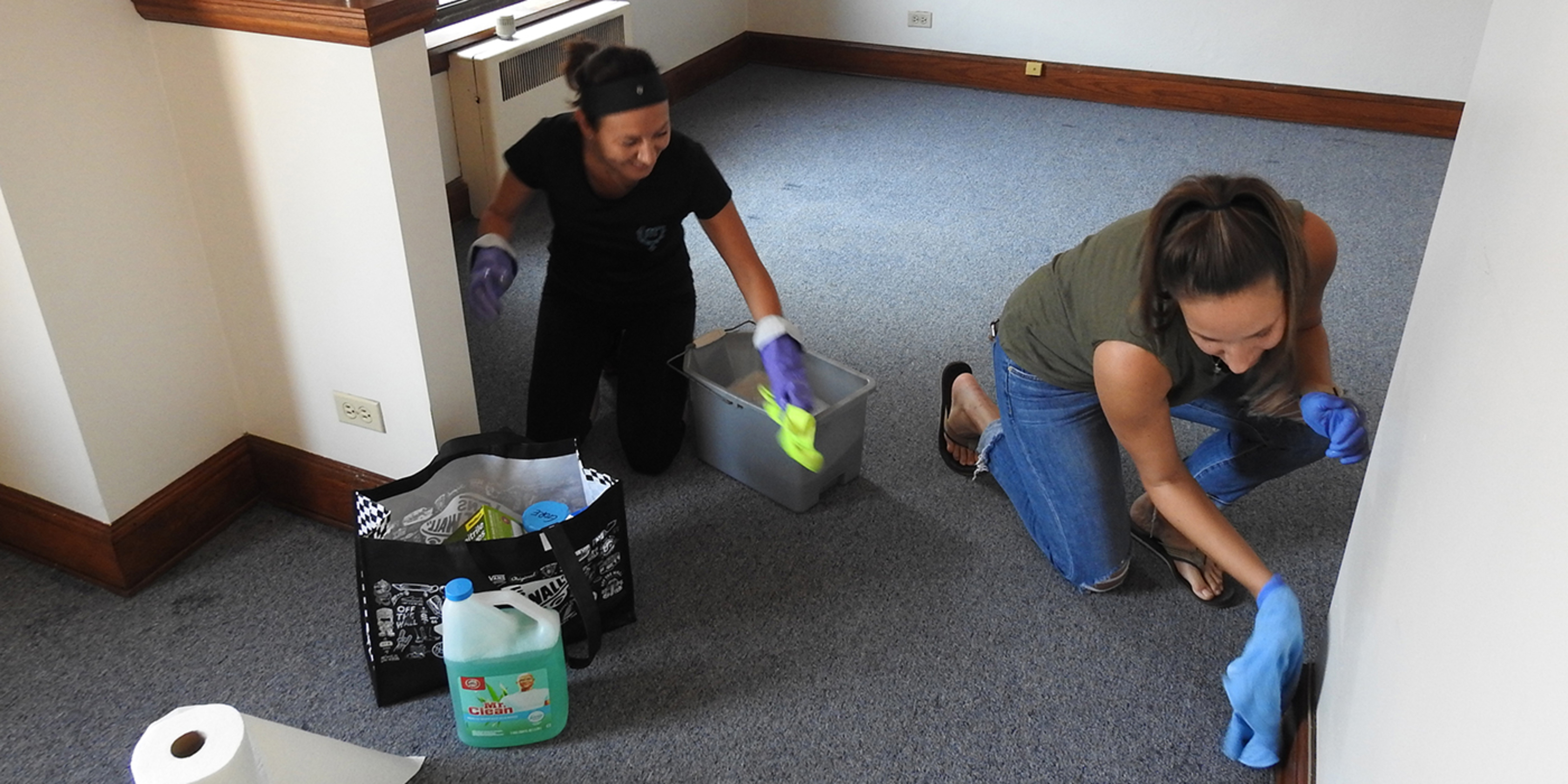 The five missionaries who will work in the diocese are expected to move into the building in October. To help prepare the space for the new residents, a group of seminarians, young adults, priests and others from across the diocese spent much of the day on Sept. 21 dusting, vacuuming, washing walls and windows and moving furniture in the upstairs bedrooms.