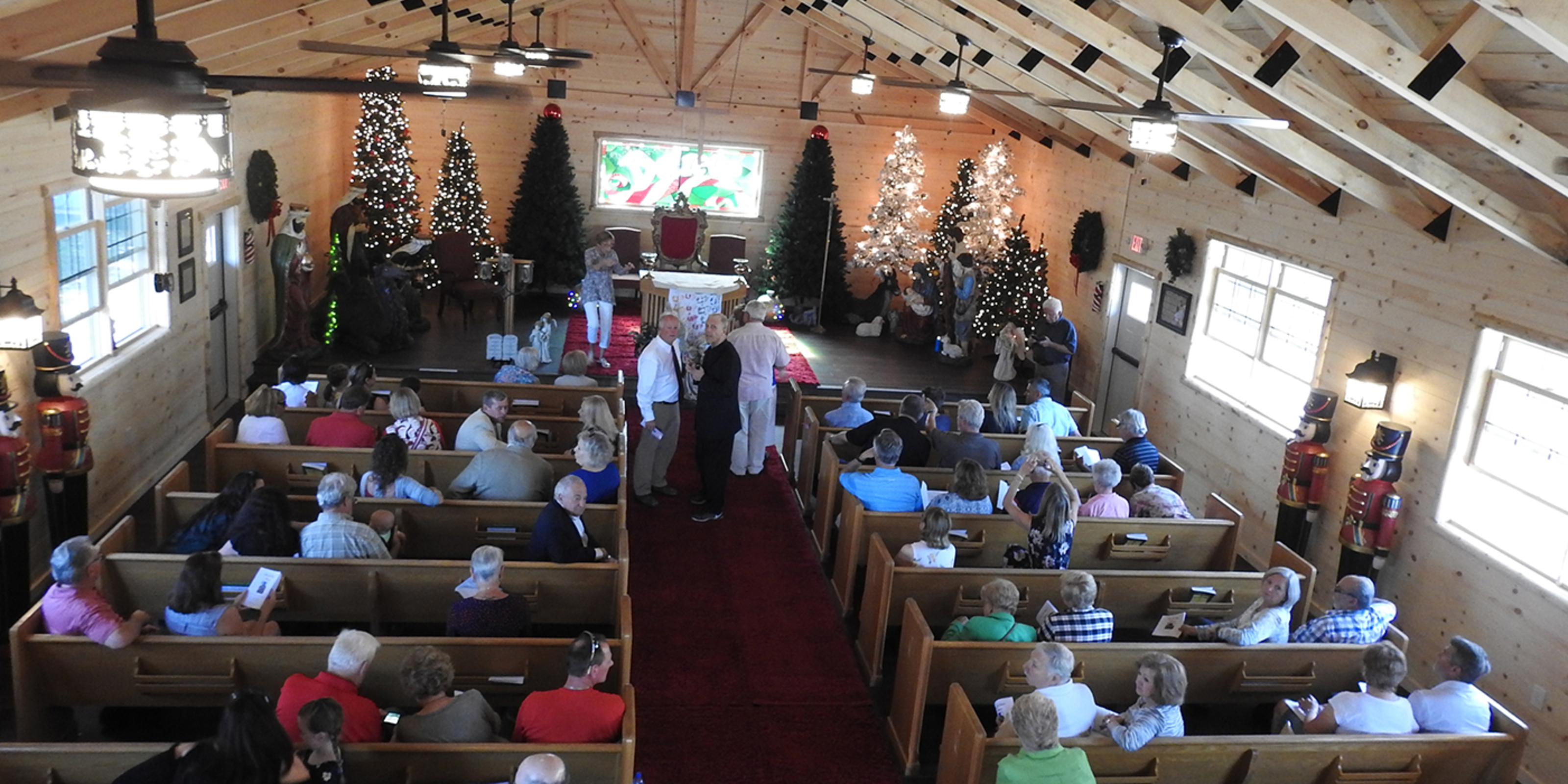 It hardly looks like Christmas outside, but inside the North Pole Chapel at Santa’s Hide-A-Way Hollow in Middlefield, it’s Christmas every day.