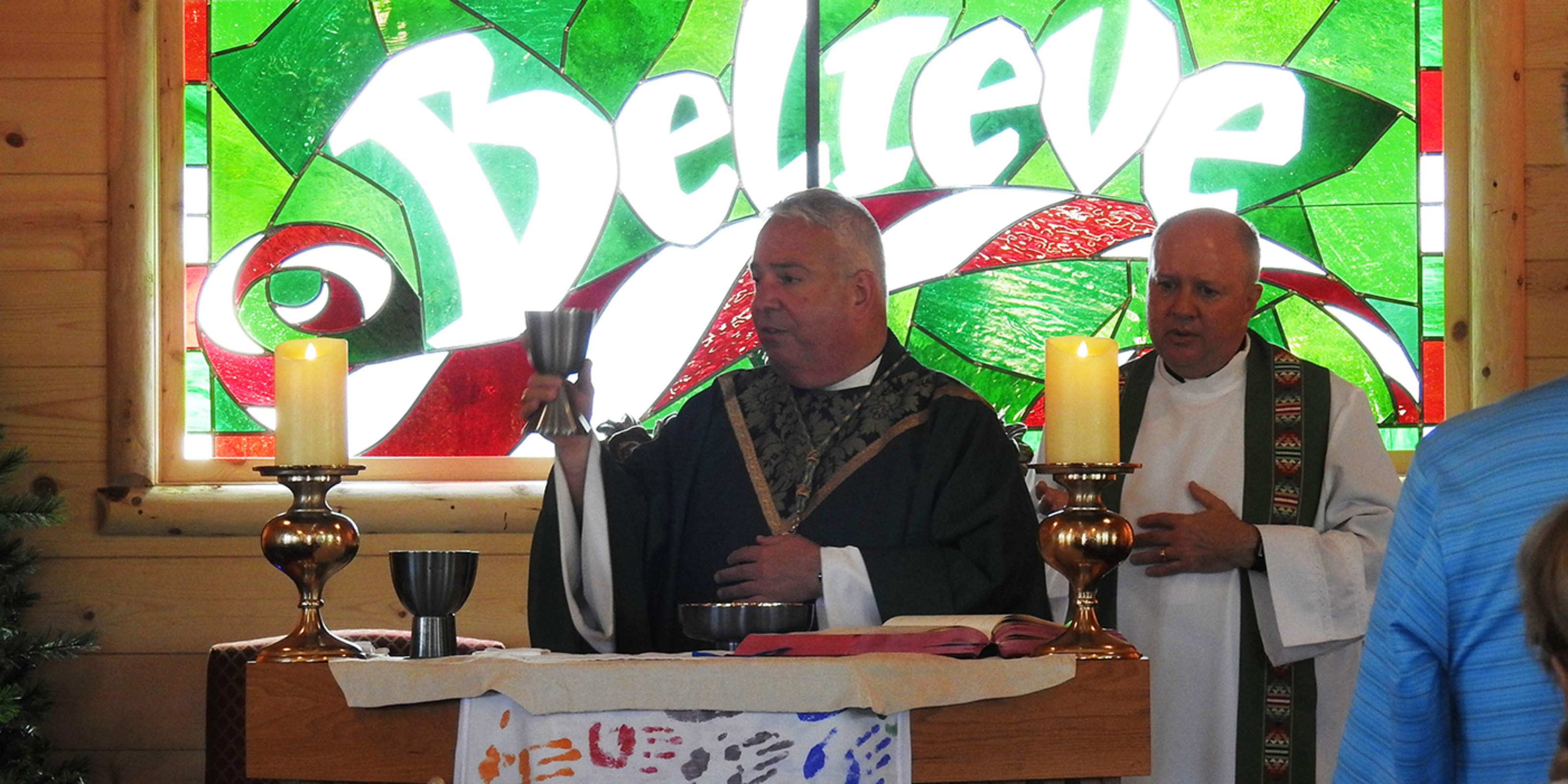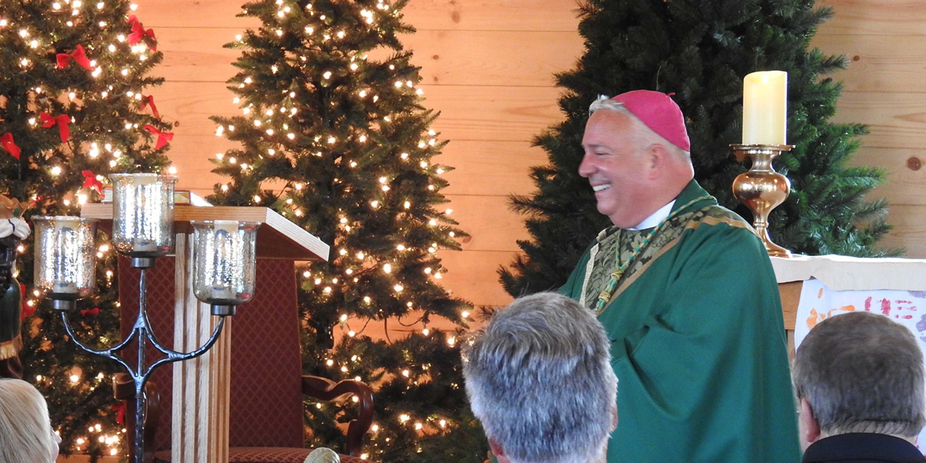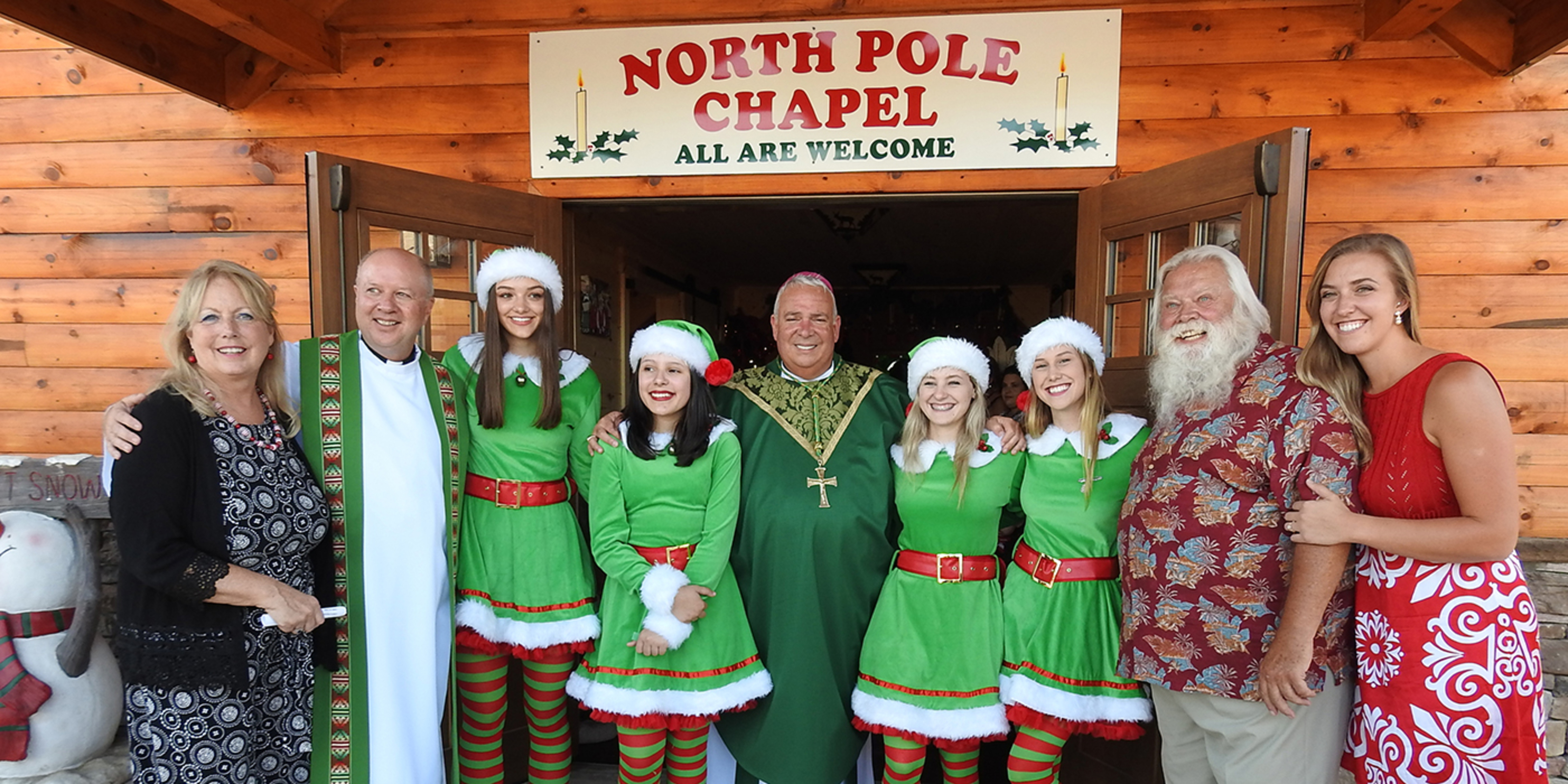 Bishop Nelson Perez and Father Dan Schlegel, secretary and vicar for clergy and religious for the Catholic Diocese of Cleveland, paid a visit to Santa’s Hide-A-Way on Sept. 20 to celebrate Mass and dedicate the new chapel. It was the bishop’s first visit and he said he could feel the Christmas spirit.