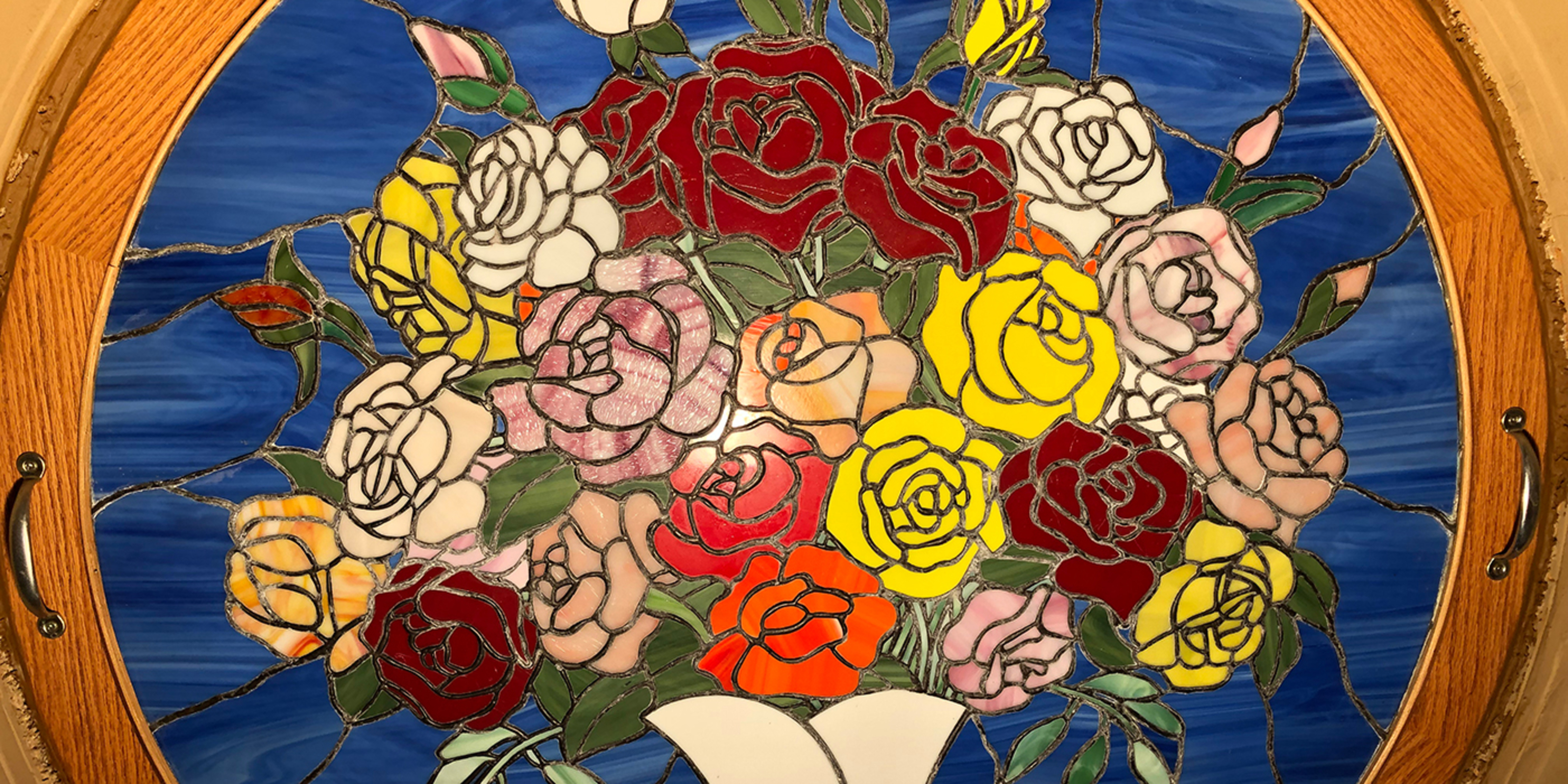Another window was crafted by Father Bob Glepko, the parish parochial vicar. He designed and painted the stained-glass window that features a vase of flowers with the insignia of Pope Francis. It was installed behind the pipe organ.
