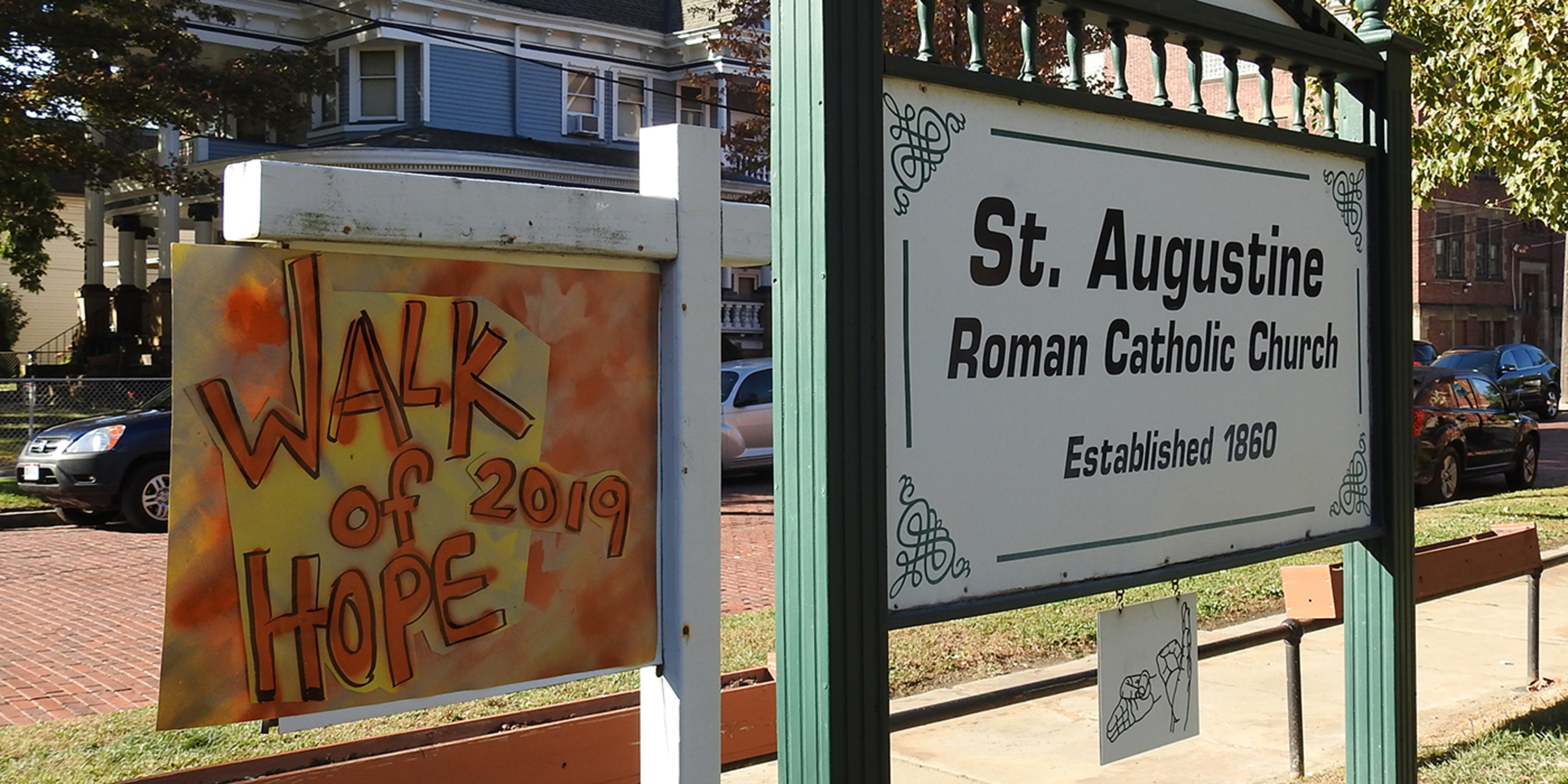 The Walk of Hope, which began in 1977, originally was a walk-a-thon that originated from multiple locations. Over the years, the concept has been refocused. It now circles the perimeter of Lincoln Park, which is across West 14th Street from St. Augustine Church.