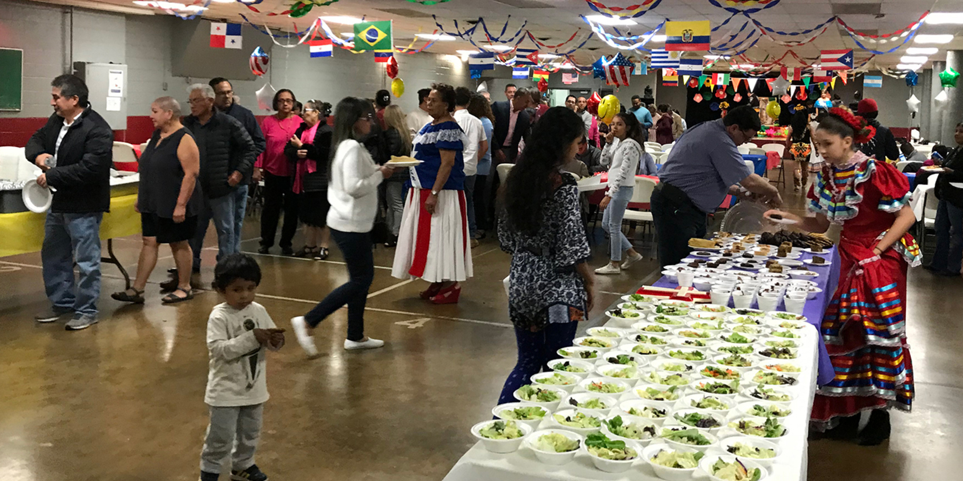 The celebration continued in Fogarty Hall after Mass with tamales, chicken, beans and rice, pork and other food, as well as music, dancing and singing.
