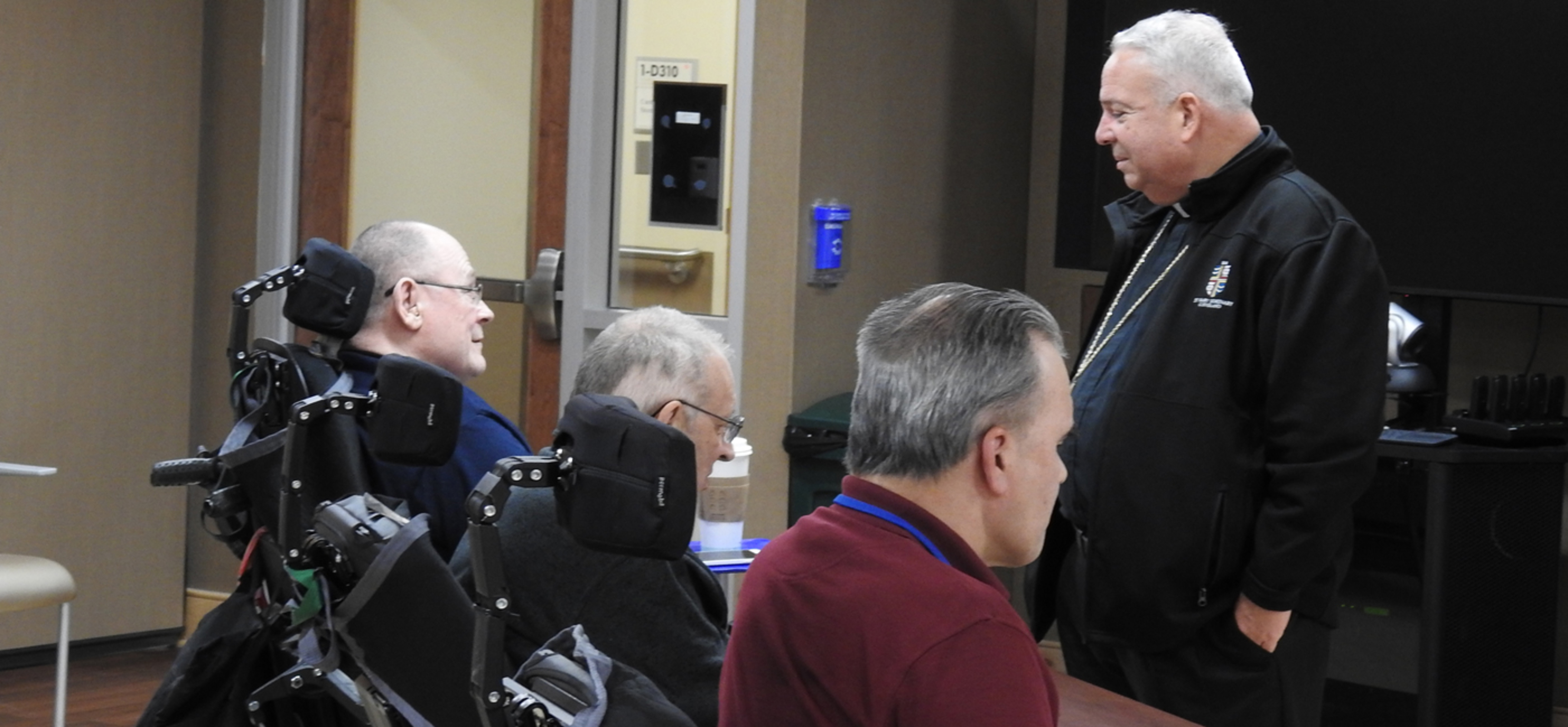 The bishop took time to speak individually with several veterans, asking about their branch of service and where they served. He also posed for photos and selfies with veterans and staff members.