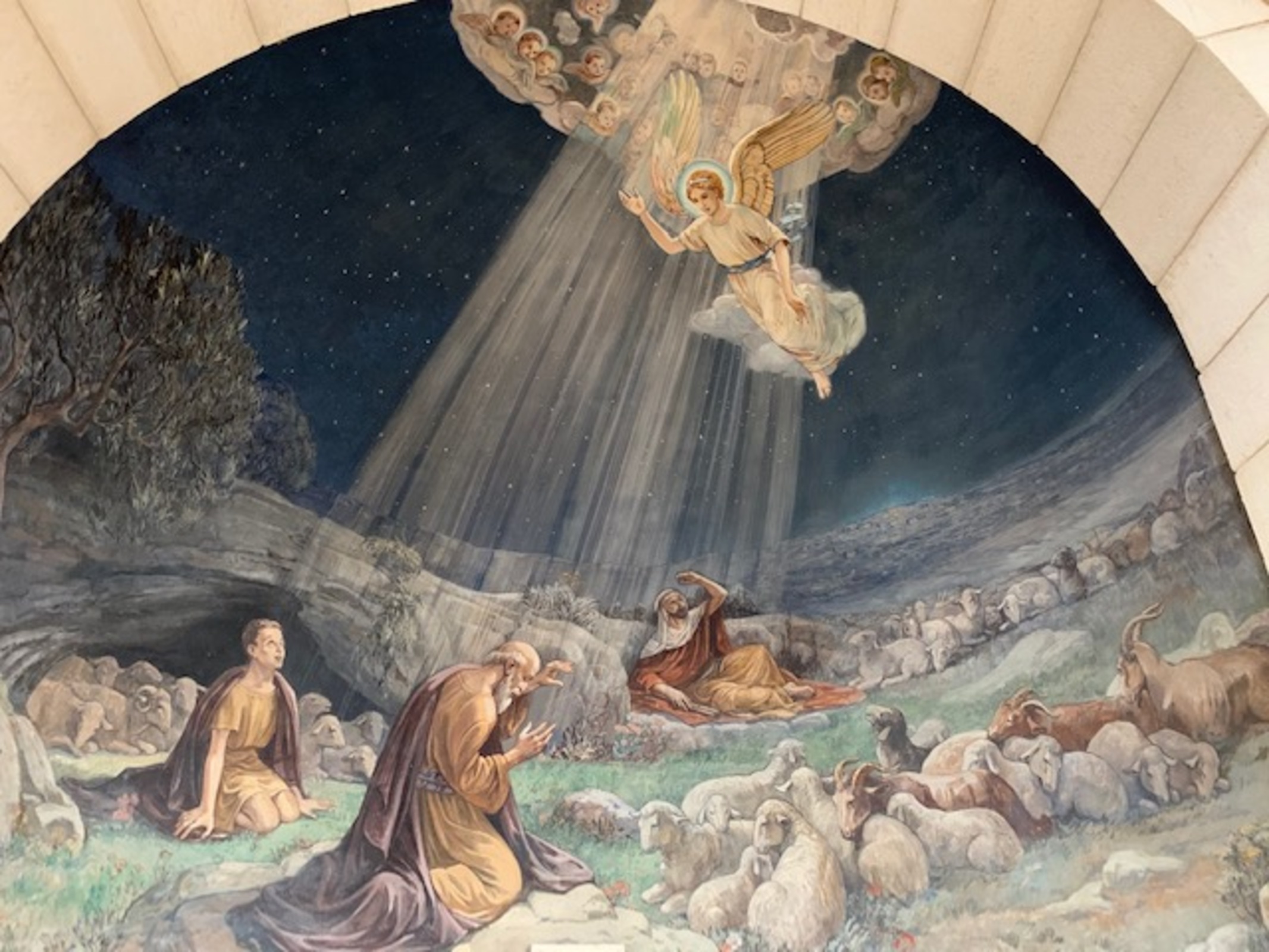 The pilgrims spent the day in Bethlehem, the birthplace of Jesus. We began our day at the Shepherd’s Field. It is the site where the angels appeared to the shepherds who were watching their sheep when the angels announced that Jesus was born. This site has caves from the time of Jesus in which shepherds would have spent the night with their sheep. After touring the caves, the pilgrims visited the Chapel at the Shepherd’s Field which was built over the spot where the angels appeared. Then as pilgrims we toured the birthplace of Jesus in the Church of the Nativity. Pilgrims were able to touch the very spot where Jesus was born.