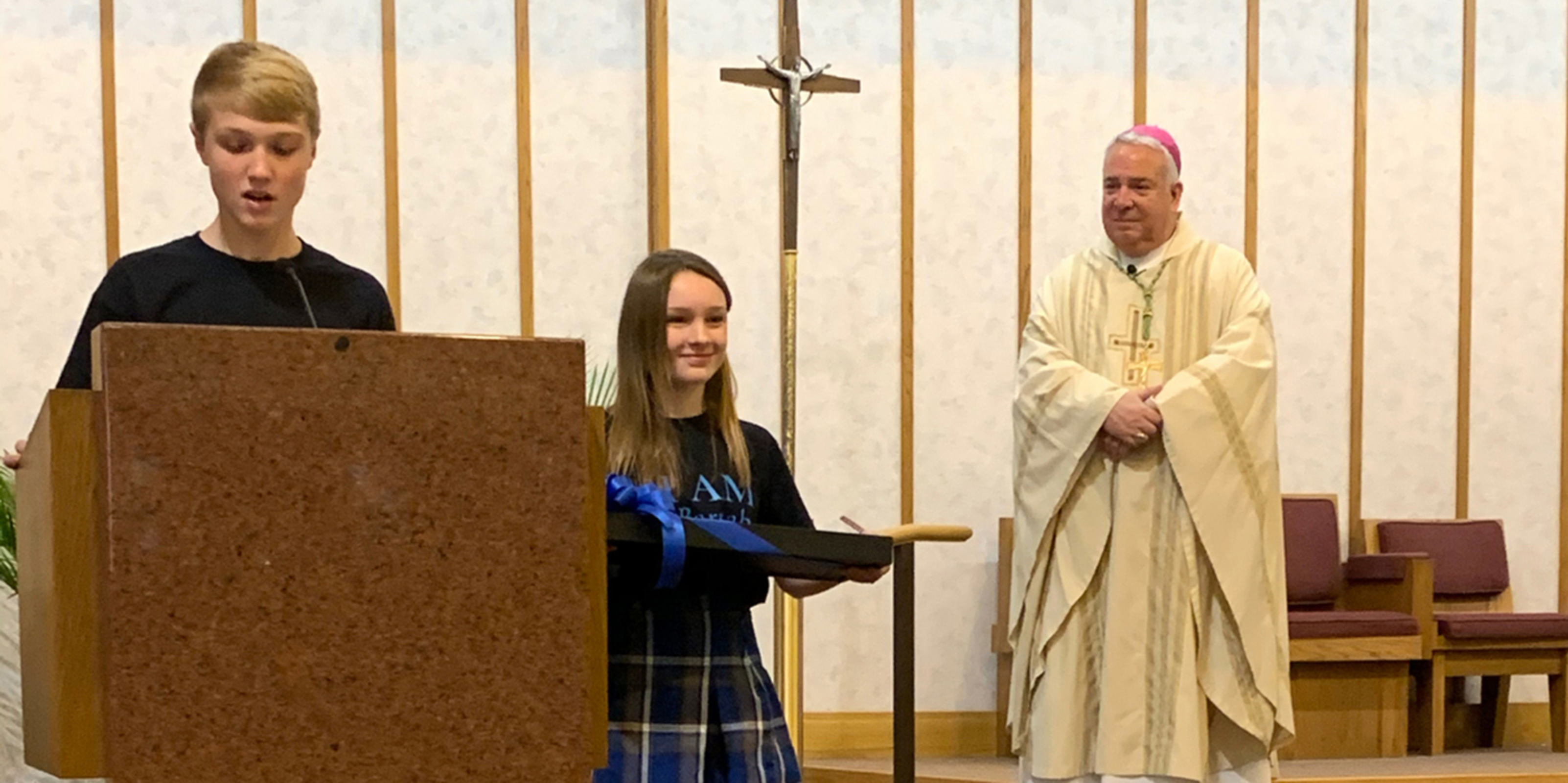 When he arrived, the bishop learned that the school’s theme for the year is “Be Gentle to All.” In his homily, he noted how the theme went hand-in-hand with the day’s Gospel.