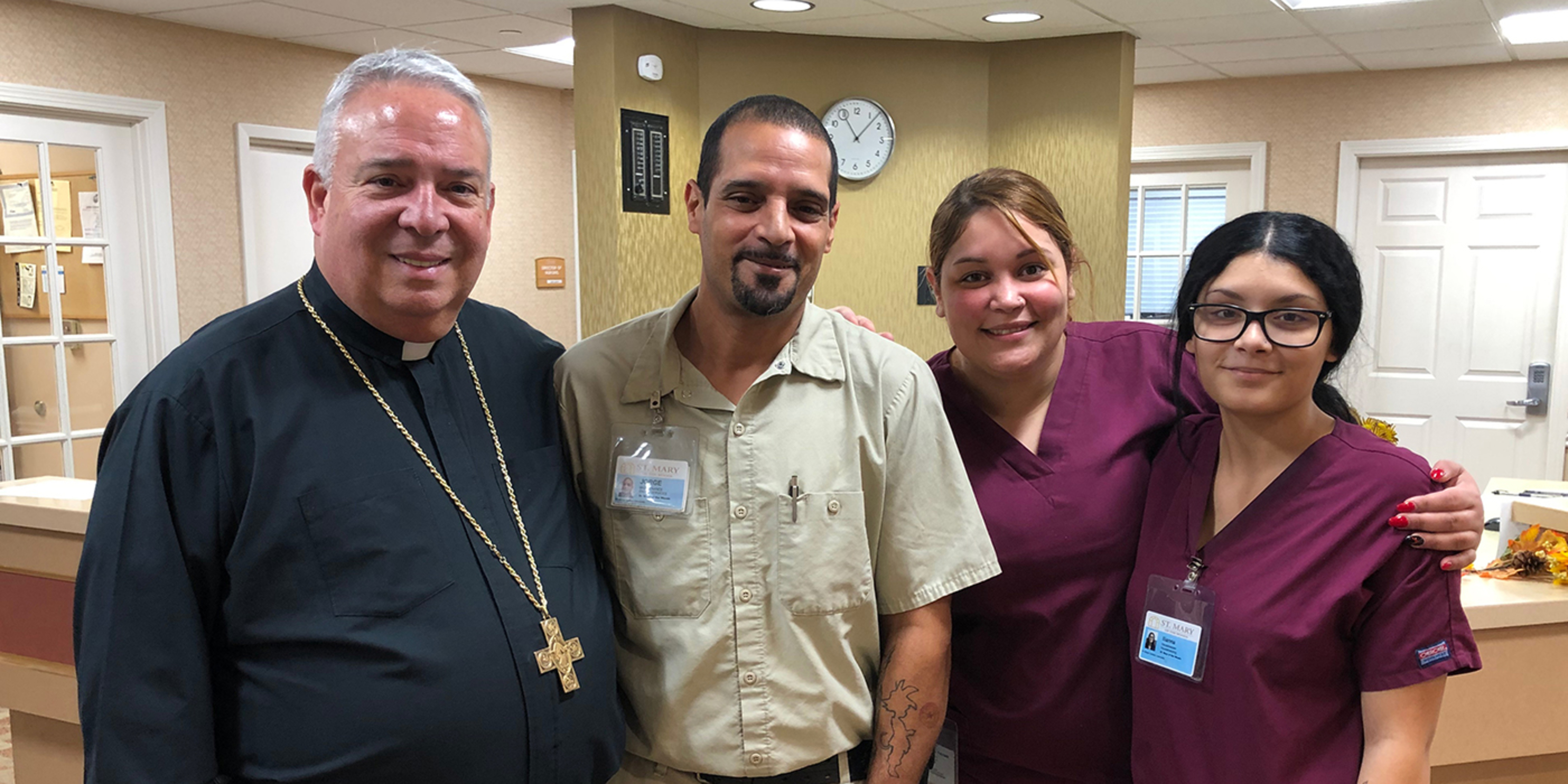 The residents were touched when Bishop Perez personally distributed communion to those who were unable to walk to the altar. A tour of the assisted, skilled and independent living facilities followed Mass, as well as a reception where the bishop met resident Mary Spadaro who will celebrate her 100th birthday on Thanksgiving.