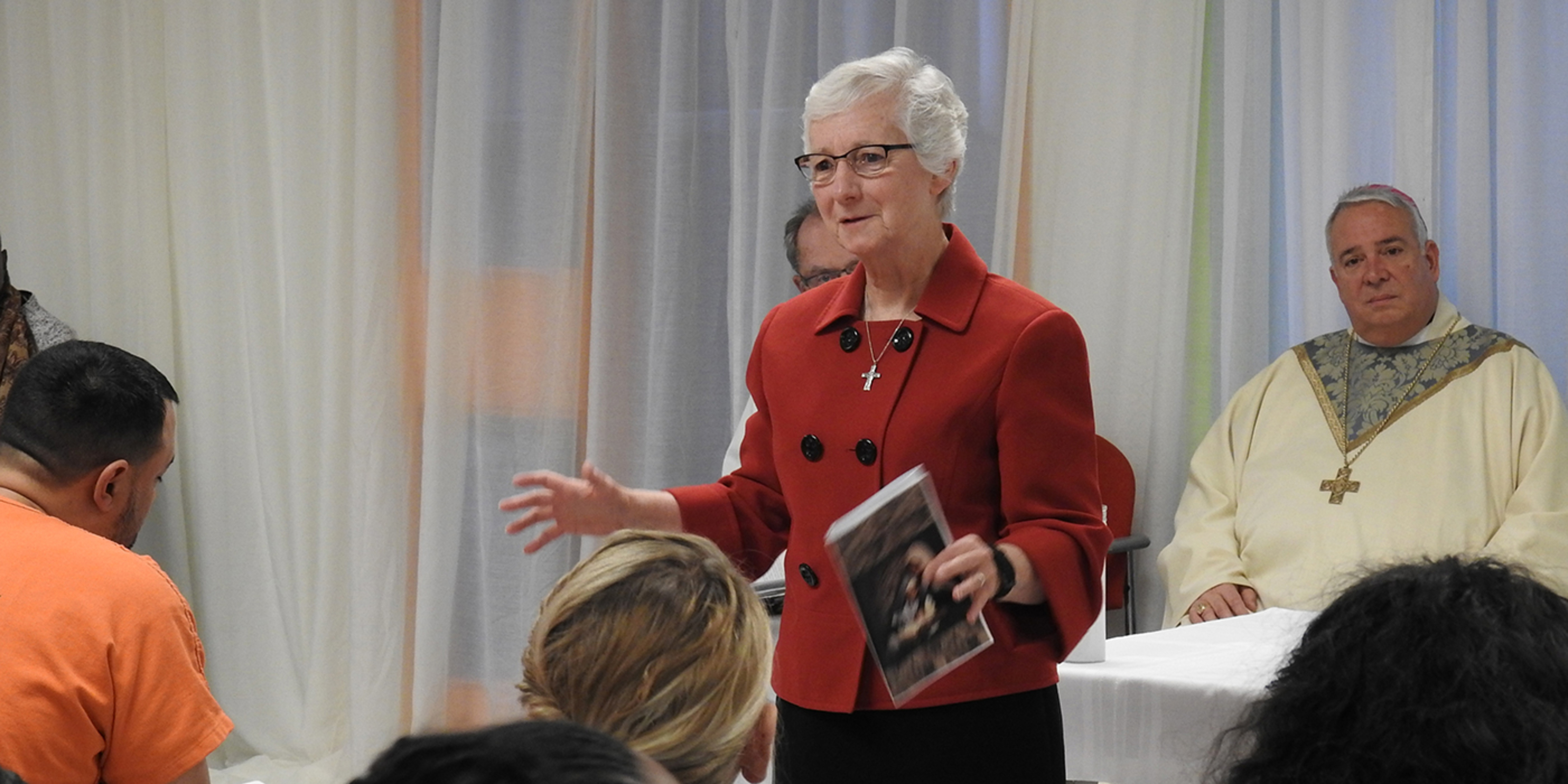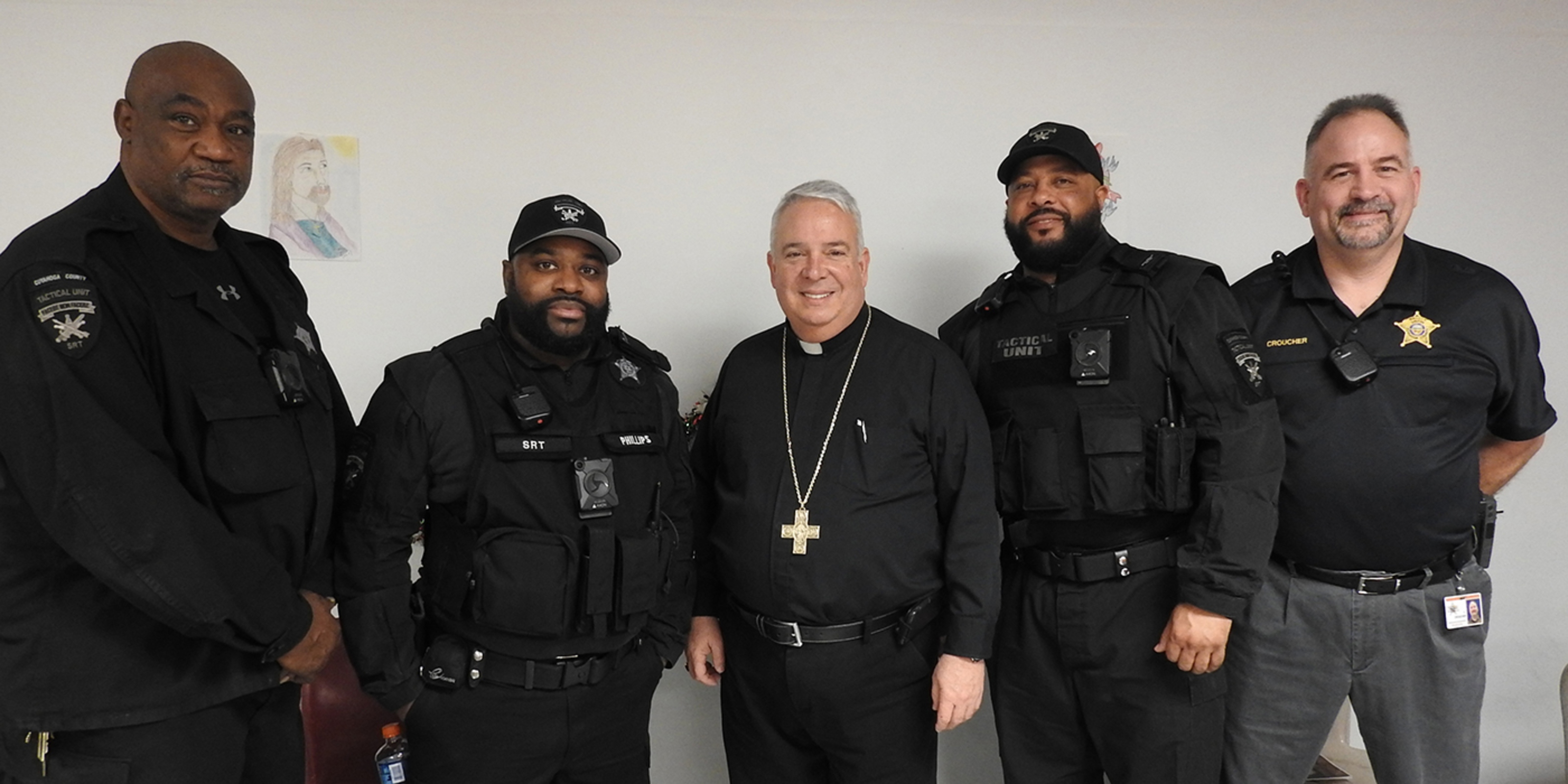 He also reminded the group that God’s love is shown in tangible ways, including those who minister to the incarcerated like Father Neil Walters, a diocesan priest who serves as the jail chaplain; Sister Rita Mary Harwood, director of the diocesan Parish Life Office, which oversees the prison ministry; volunteers from the Society of St. Vincent de Paul and others.