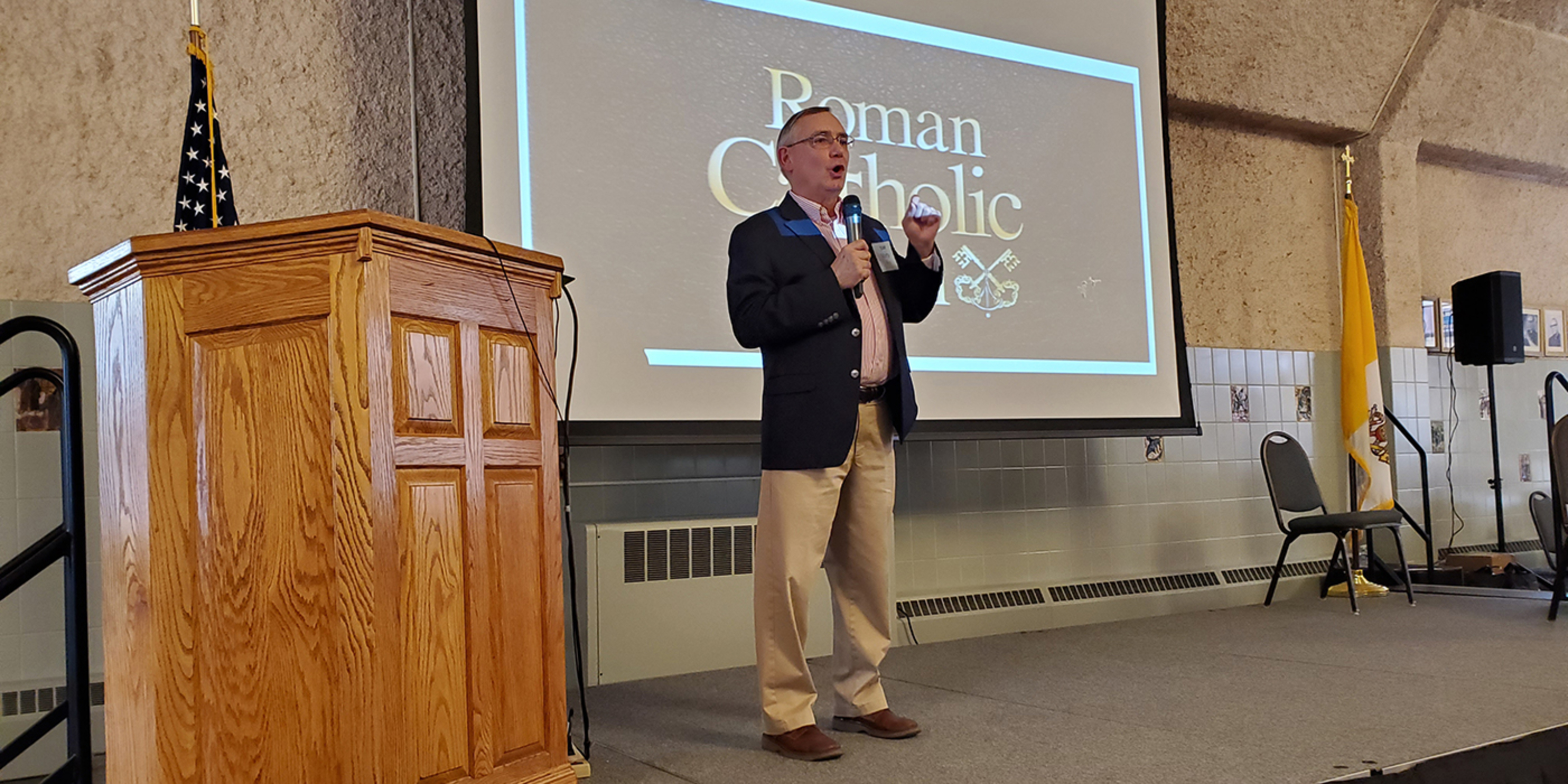 In a morning session when keynote speaker Elvis Grbac, Villa Angela-St. Joseph High School athletic director, took the stage, he placed his Super Bowl XXIX championship ring -- won as a member of the San Francisco 49ers -- on the stage floor, front and center for all to see. Comparing his championship ring to the crucifix, he posed the question: “Now what here really matters?” Grbac talked about the difference between putting on a football uniform and putting on the full armor of God. He explained that through his prayer life he’s convinced that the Lord wants him to go to the ends of earth telling his life’s story.