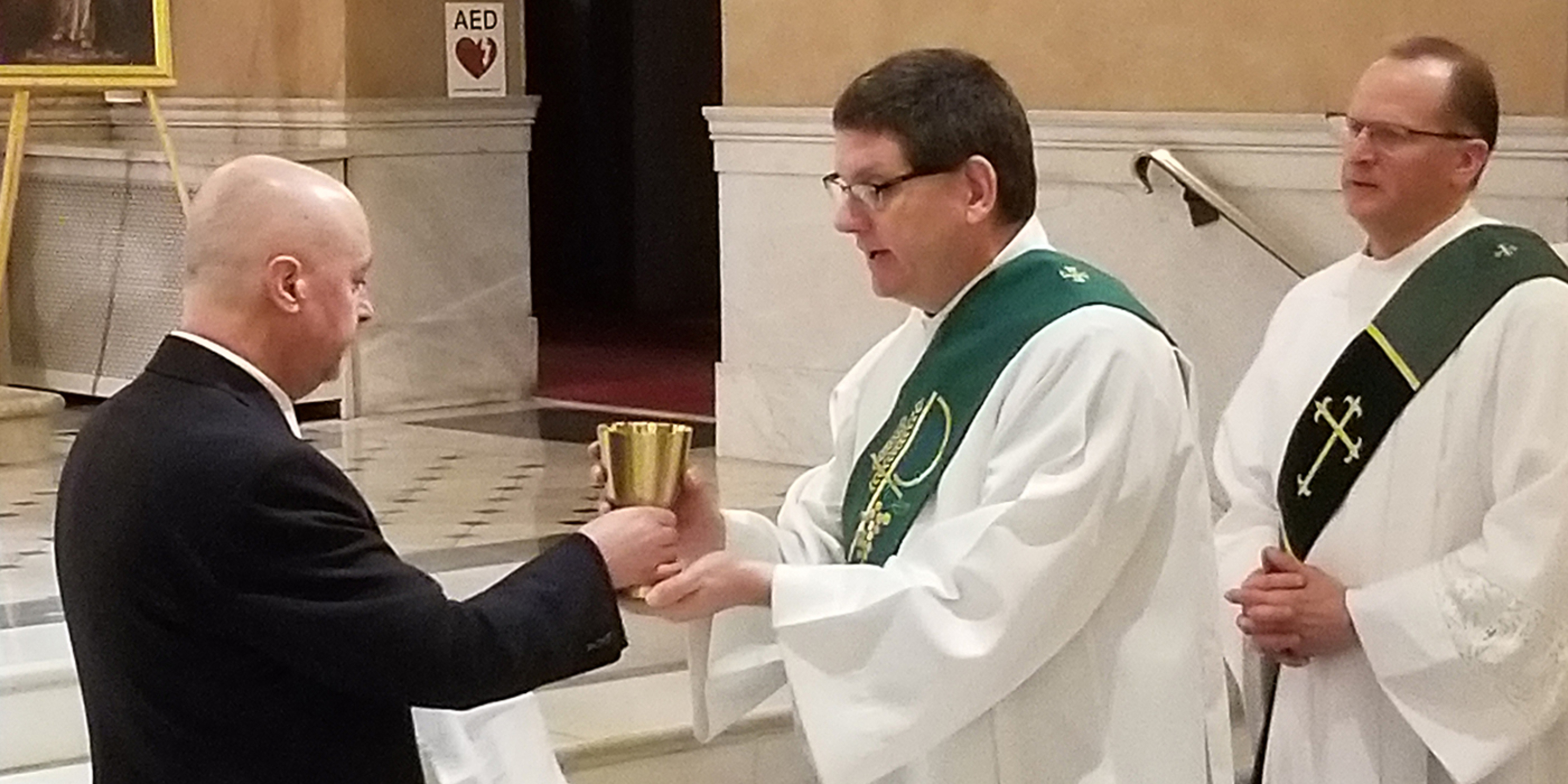 Matthew Thomas Grasson from SS. Cosmas & Damian Parish in Twinsburg, Jeno Kiraly from St. Anthony of Padua Parish in Lorain and Matthew John Lawler from St. Joseph Parish in Strongsville are the new acolytes. The institution to acolyte is a step in the five-year permanent diaconate formation process, which also includes study, prayer, reflection and service. Their new ministry as acolytes includes assisting the priest and deacon at the altar during Mass. They will serve during liturgies, help distribute holy Communion and purify sacred vessels.