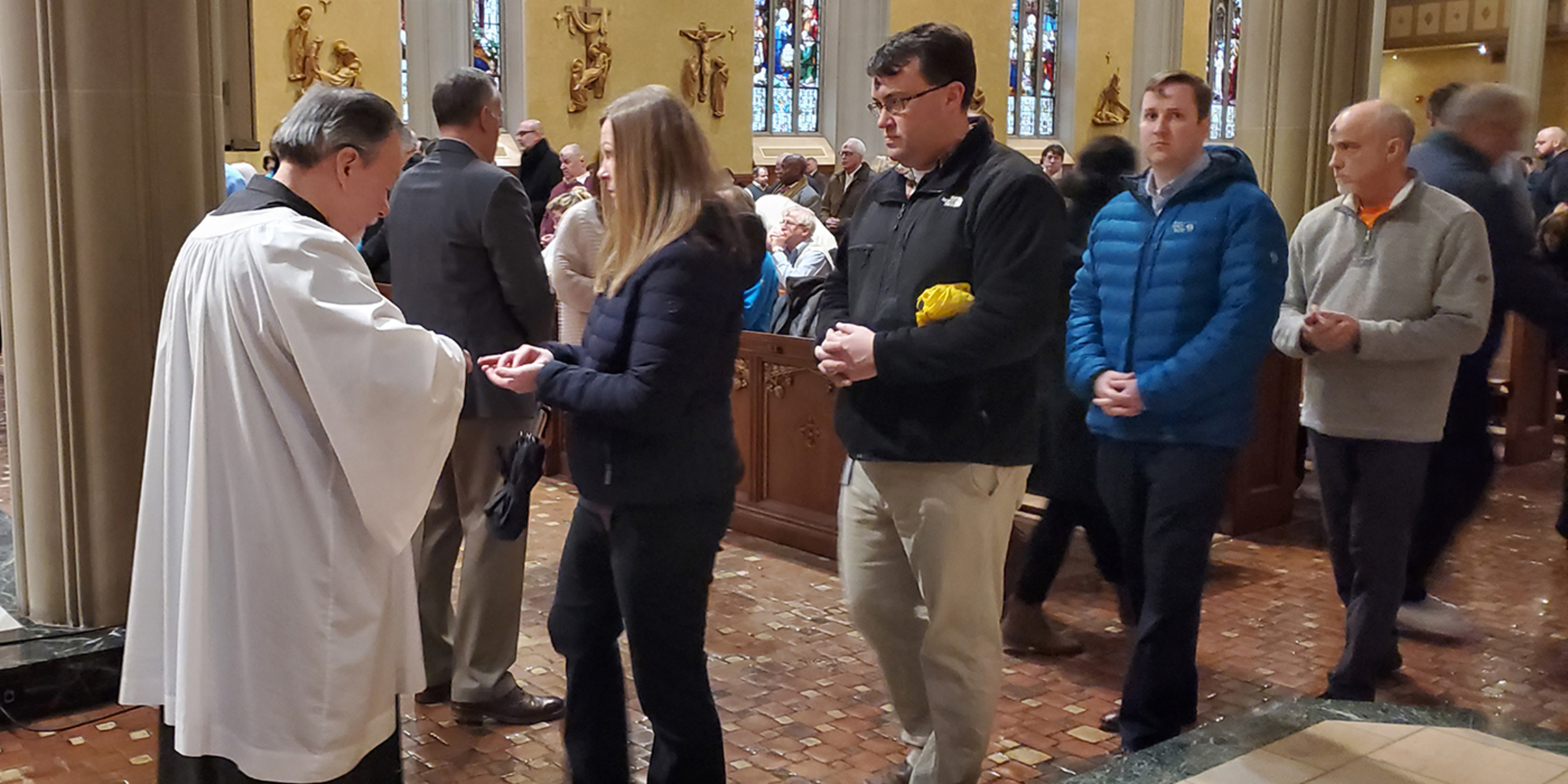 “We are given the tools we need to get into shape for when we meet the Lord (death),” Father said during his homily at the noon Mass on Ash Wednesday, Feb. 26. Our lives should be different during Lent, he noted. Hundreds attended the liturgy – one of six Masses celebrated at the cathedral that day -- which included distribution of blessed ashes.