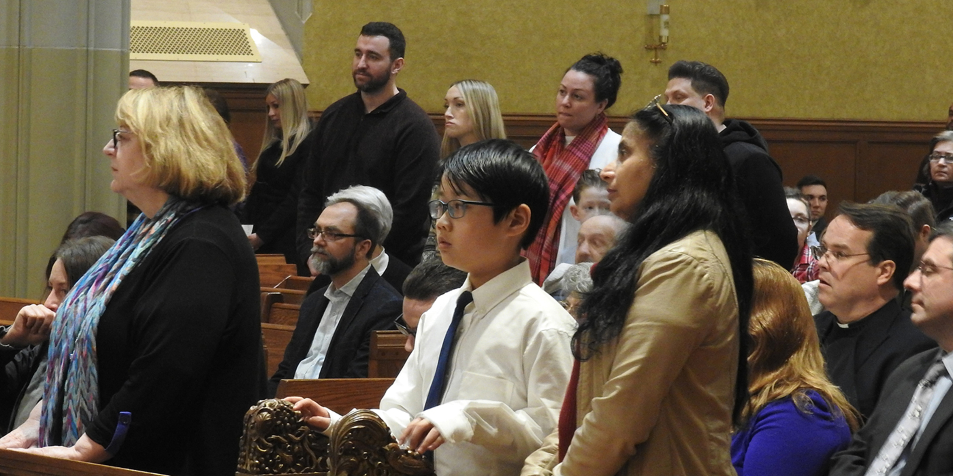 About 1,100 people – including more than 160 catechumens and their godparents and nearly 200 candidates for full communion in the Catholic Church and their sponsors – attended the annual Rite of Election of Catechumens and Call to Continuing Conversion of Candidates on March 1 at the Cathedral of St. John the Evangelist in downtown Cleveland. They are participating in RCIA at their parishes and came from across the eight-county Catholic Diocese of Cleveland.