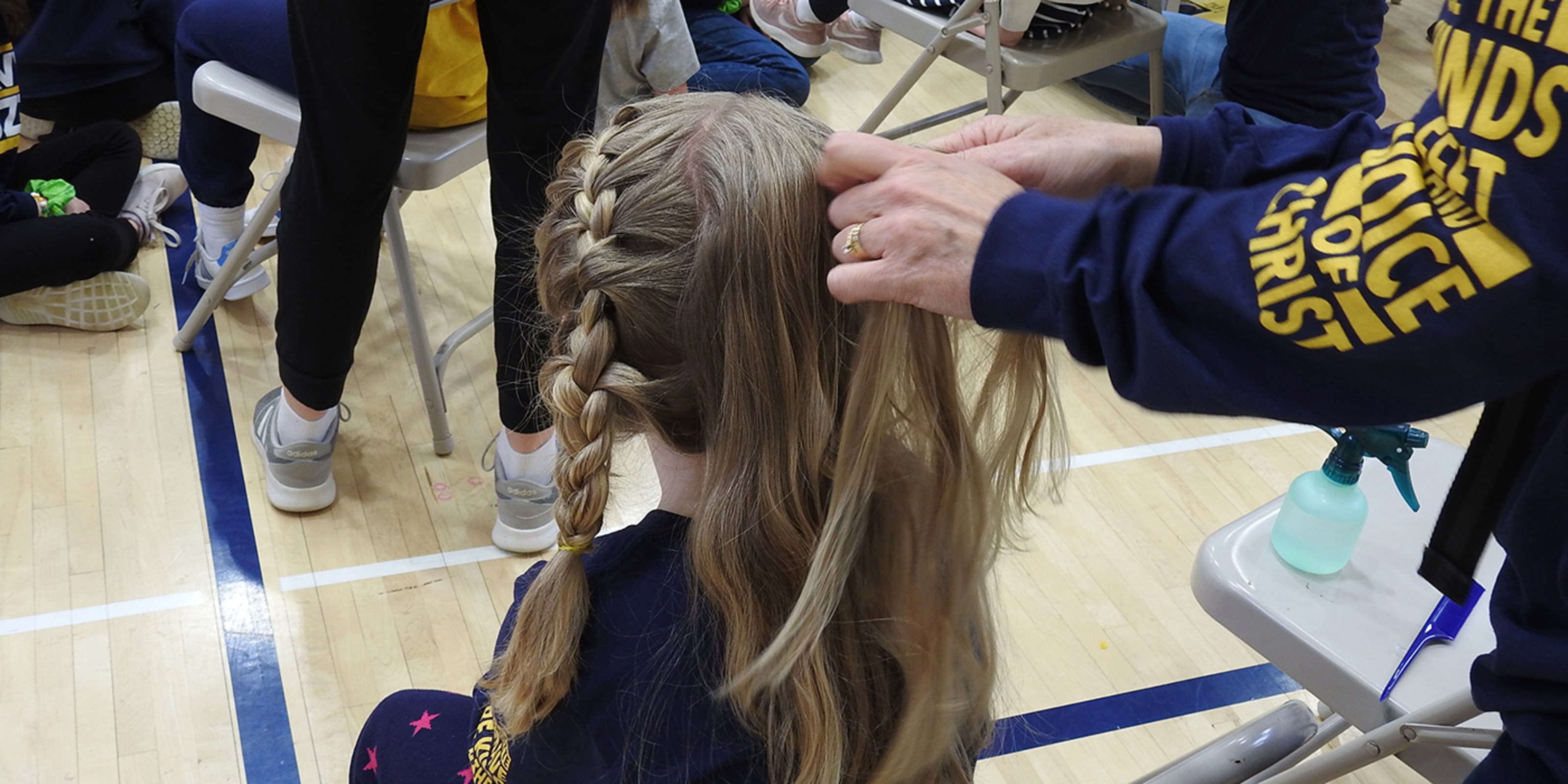 In addition to those having their heads shaved, the event offered other ways to support the cause. Some girls who made donations had their hair braided by volunteers. Some students also made hair scrunchies and bracelets which were sold as a fundraiser for BB4. And students could make a dress-down donation to help support the cause. Students who made donations or had their heads shaved could wear St. Bernadette Bulldog spirit wear, including BB4 or NEGU T-shirts.