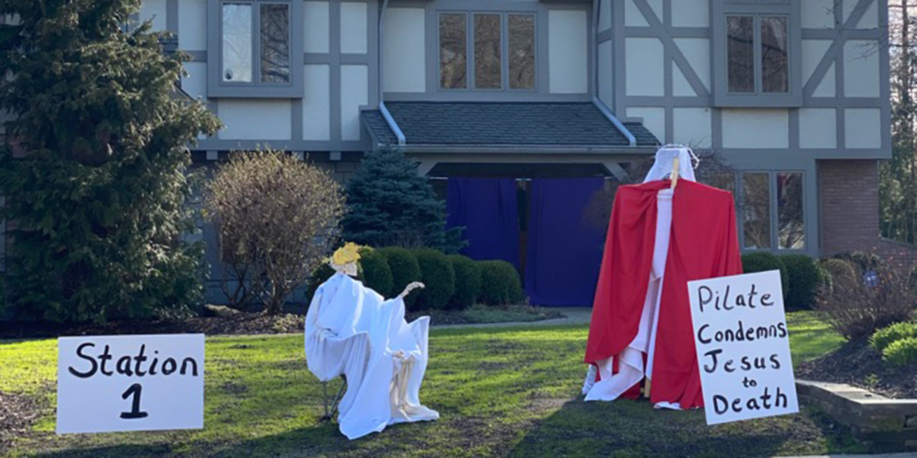 Churches were closed through most of Lent, Holy Week and Easter and remain closed until at least early May. However, St. Raphael Parish in Bay Village found a way to take one of the most-loved Lenten traditions to a broader audience by setting up drive-by Stations of the Cross on Good Friday, April 10 on parishioners’ front lawns in Bay Village, Westlake and Avon Lake.