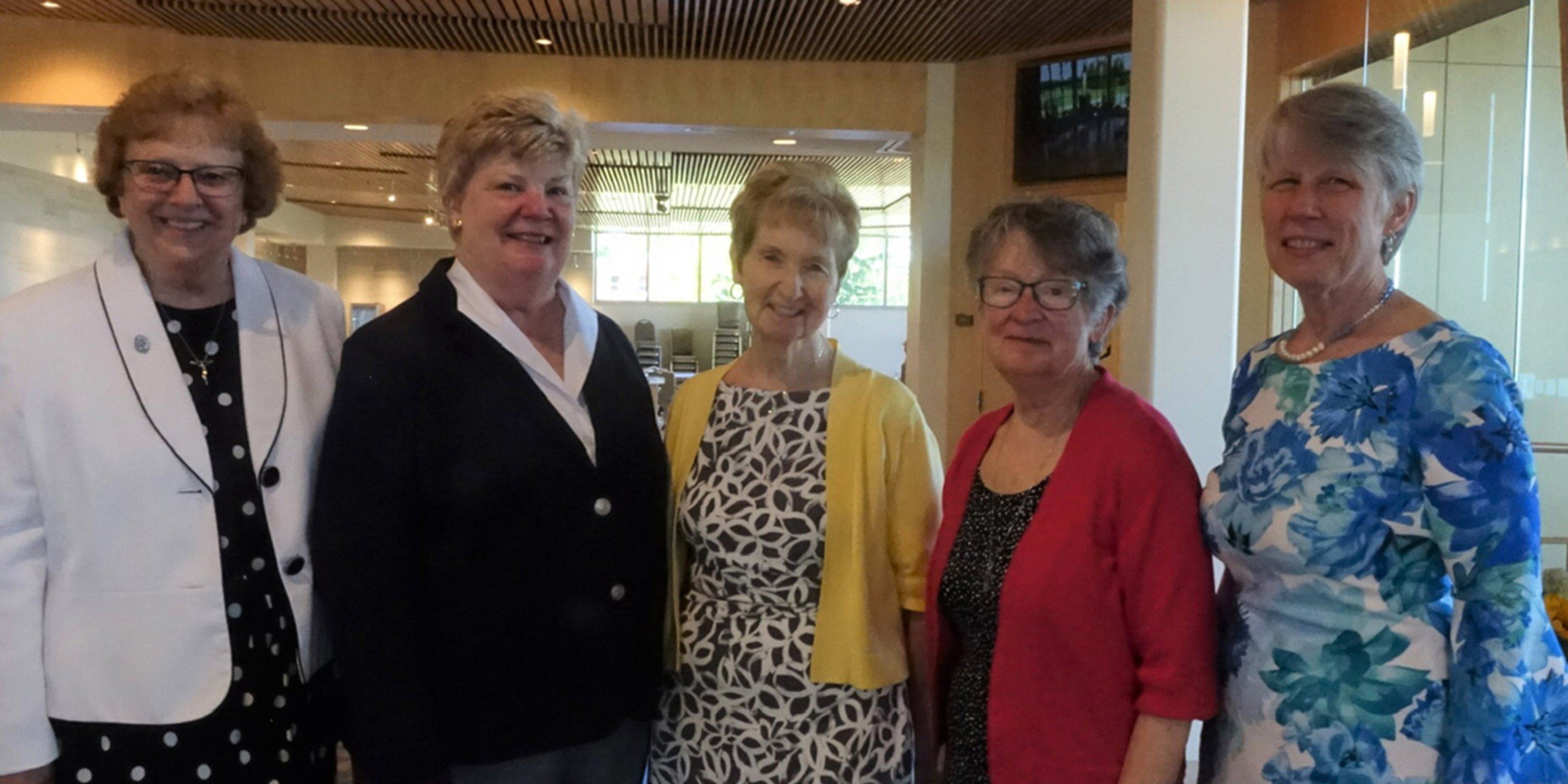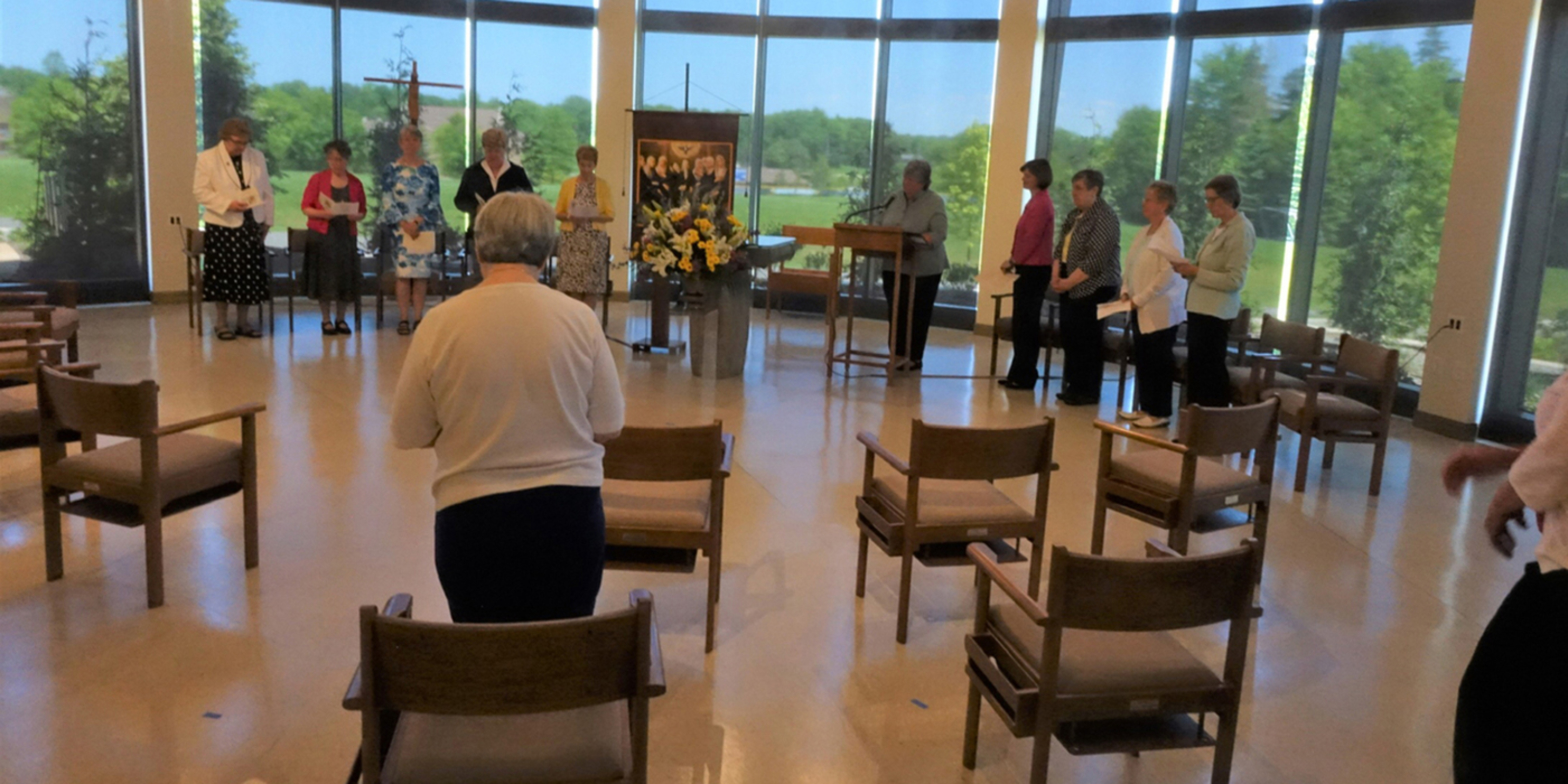 The Ursuline Sisters of Cleveland installed a new leadership team at a socially distanced ceremony June 6 at Merici Crossings, their Pepper Pike residence and congregational center. The five-person team, including a president and four council members, will serve a four-year term, implementing the directional plan set at their meeting.