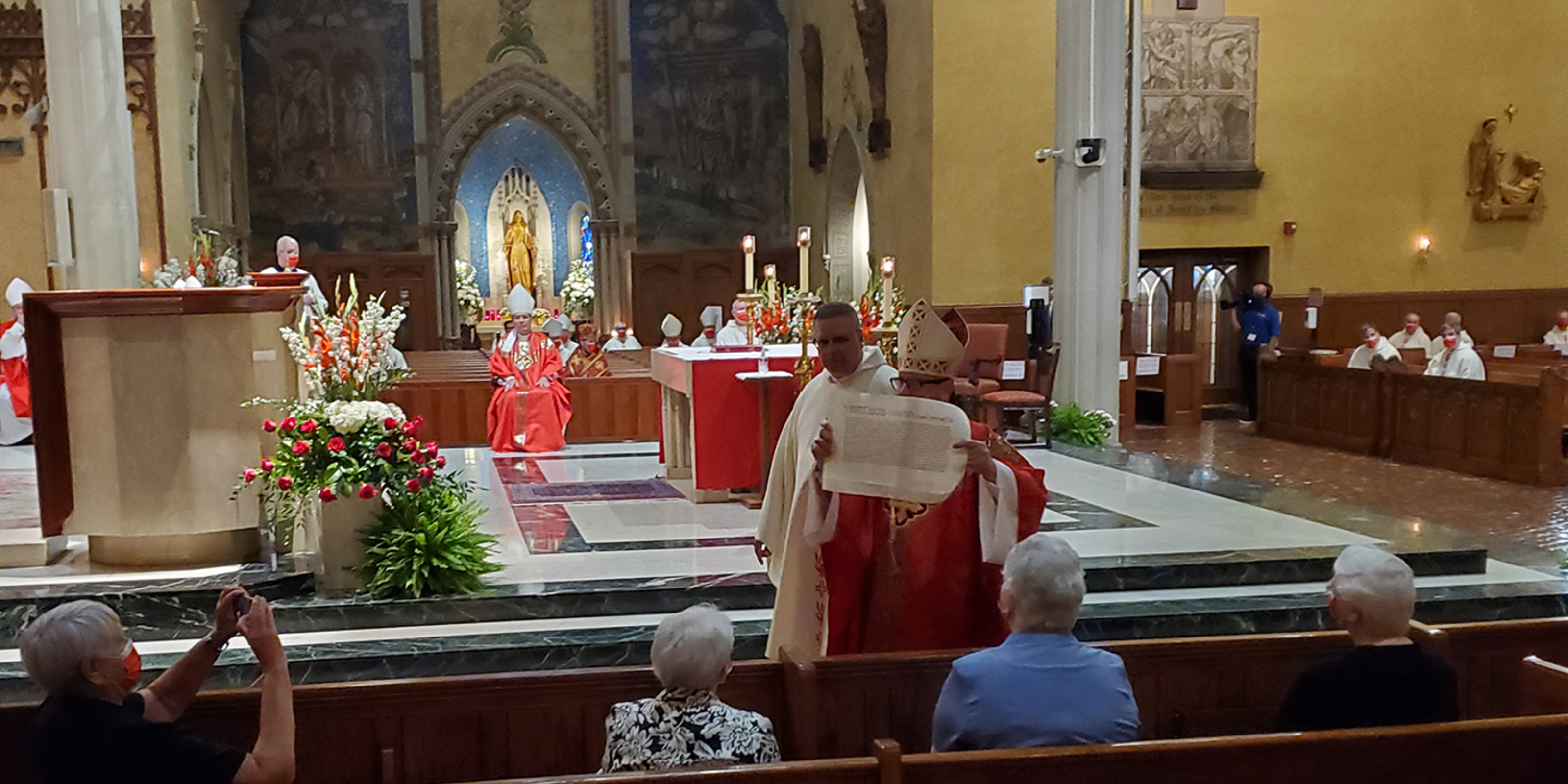 Accompanied by Father Oleksiak, the bishop showed the bull to the diocesan College of Consultors and Chancellor Vincent Gardiner, then walked through the cathedral showing the document to the rest of the clergy and congregation.