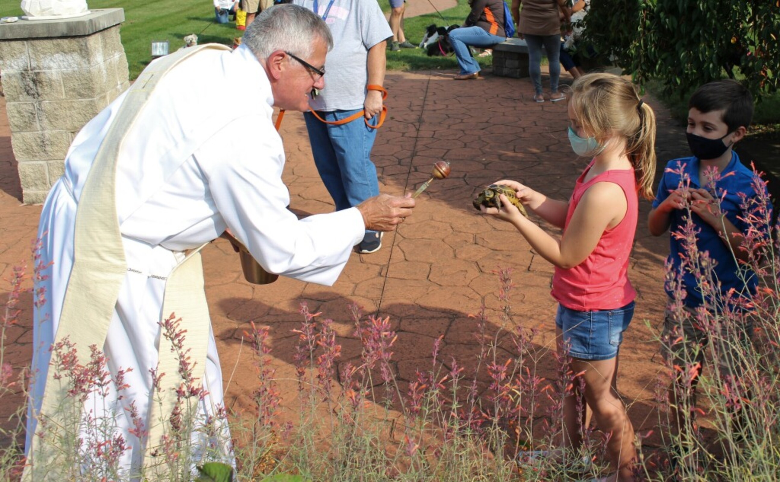 At St. Joseph Parish in Cuyahoga Falls, more than 40 pets and their families turned out for the blessing on Sept. 27, which was performed by Deacon Kent Davis. Primarily cats and dogs – and at least one turtle -- received a blessing,