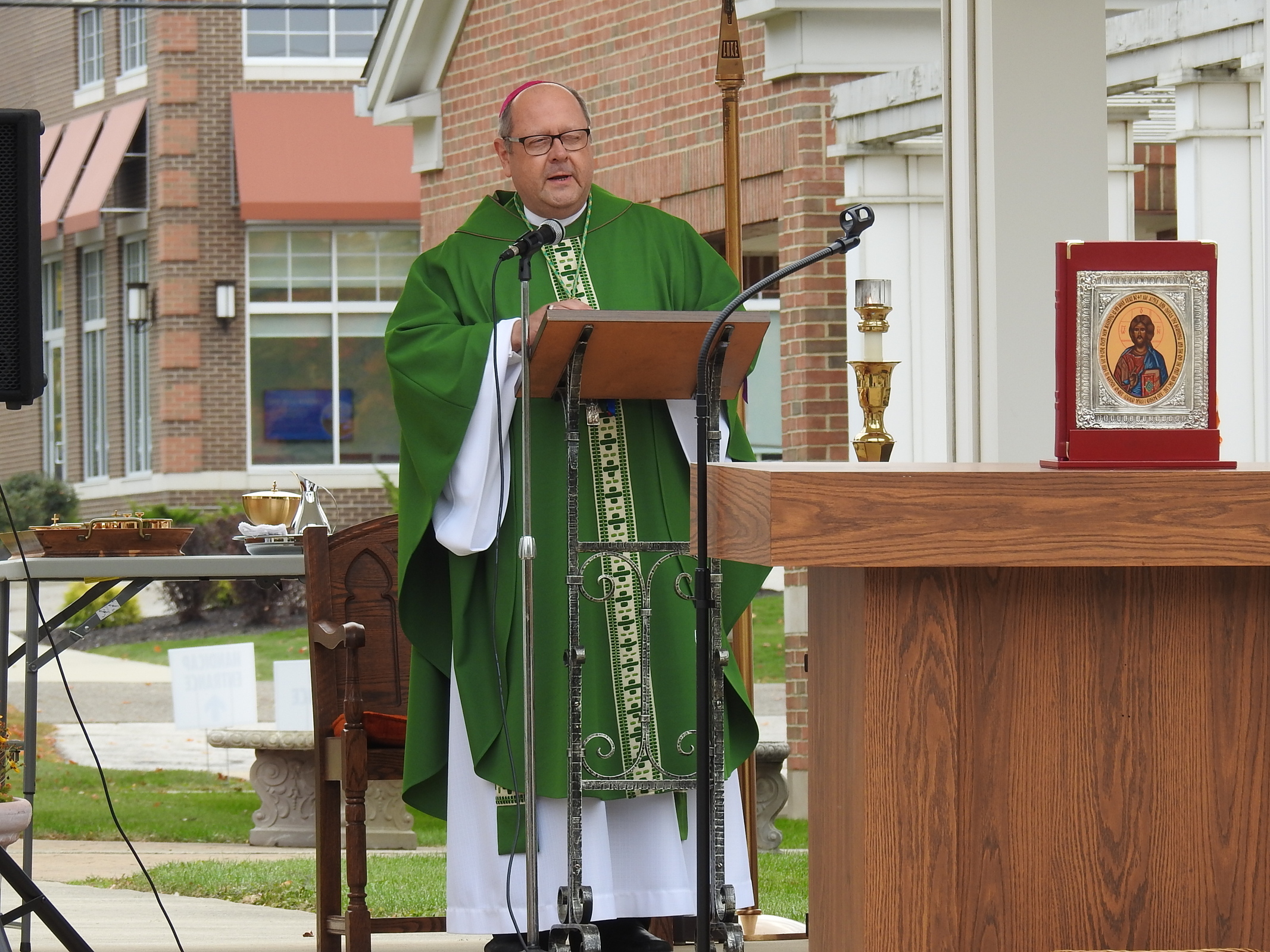 Parishioners were pleasantly surprised when the celebrant processed outside: It was Bishop Edward Malesic.
