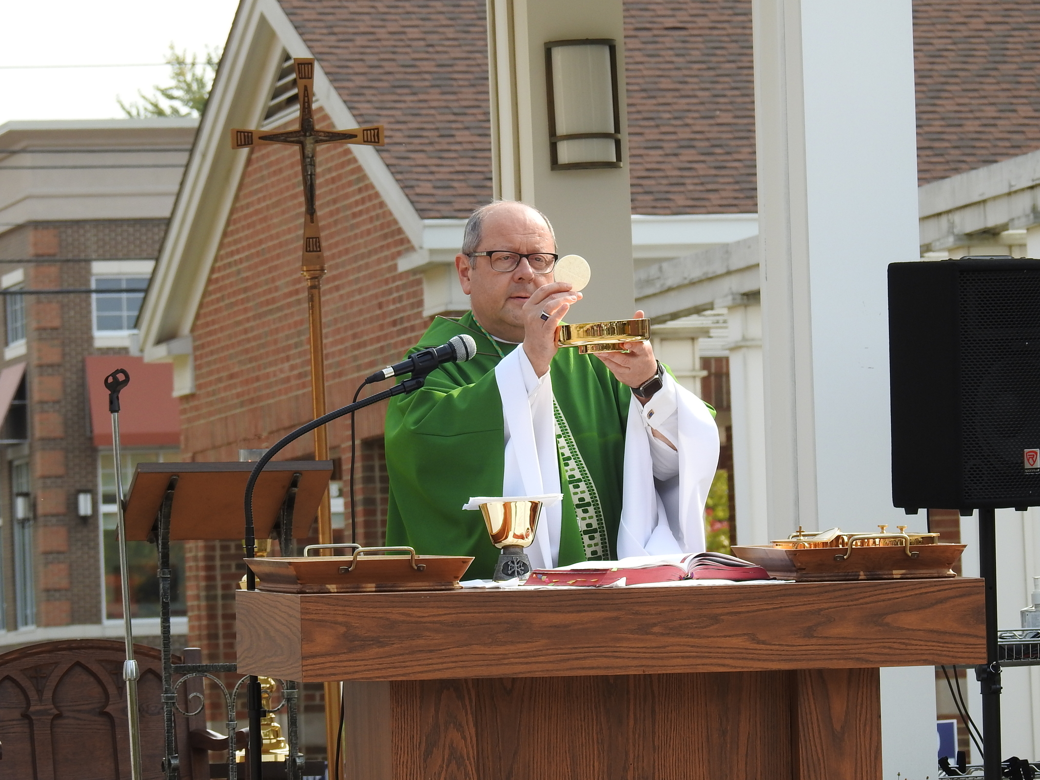 “This (outdoor liturgy) reminds me of my campus ministry days (in the Diocese of Harrisburg, Pennsylvania),” he said, telling the group that when it was too hot to celebrate Mass in the college chapel, they would move it outside. “Beware of the squirrels. Sometimes they take what you don’t want them to,” he quipped.